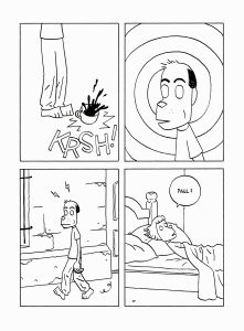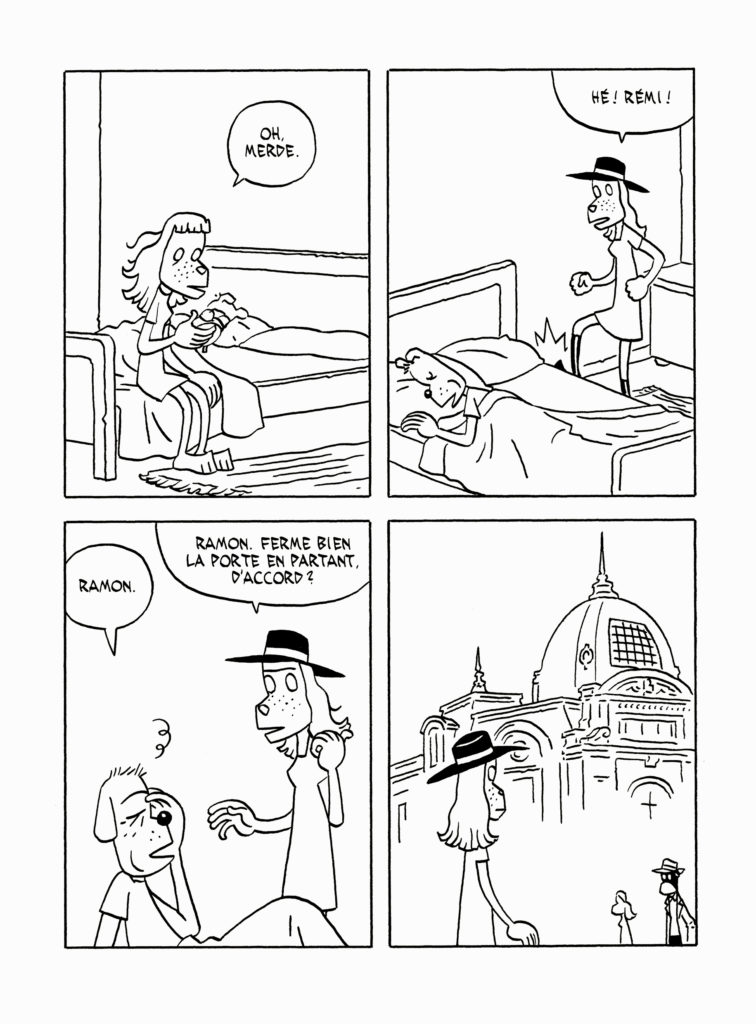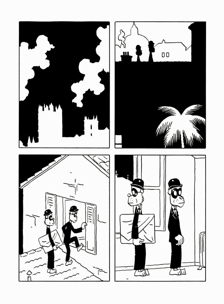 Ce premier court récit de Jason sent bon les séries policières américaines des années 60. Comme un goût de Chapeau melon et bottes de cuir et de Prisonnier, le tout mâtiné d’absurde flirtant avec le fantastique. Avec des hommes mystérieux et des scènes de combats assez stylisées.