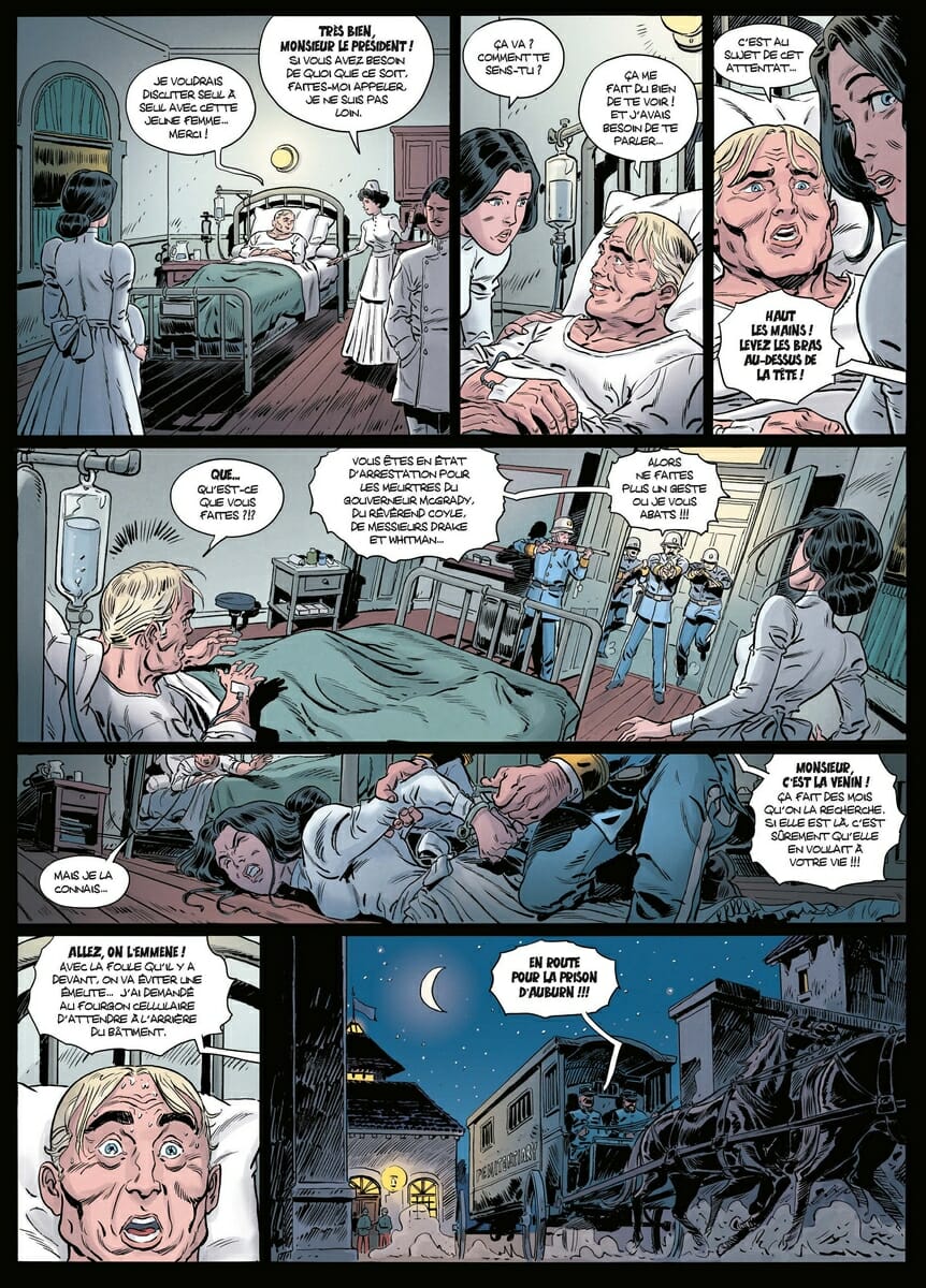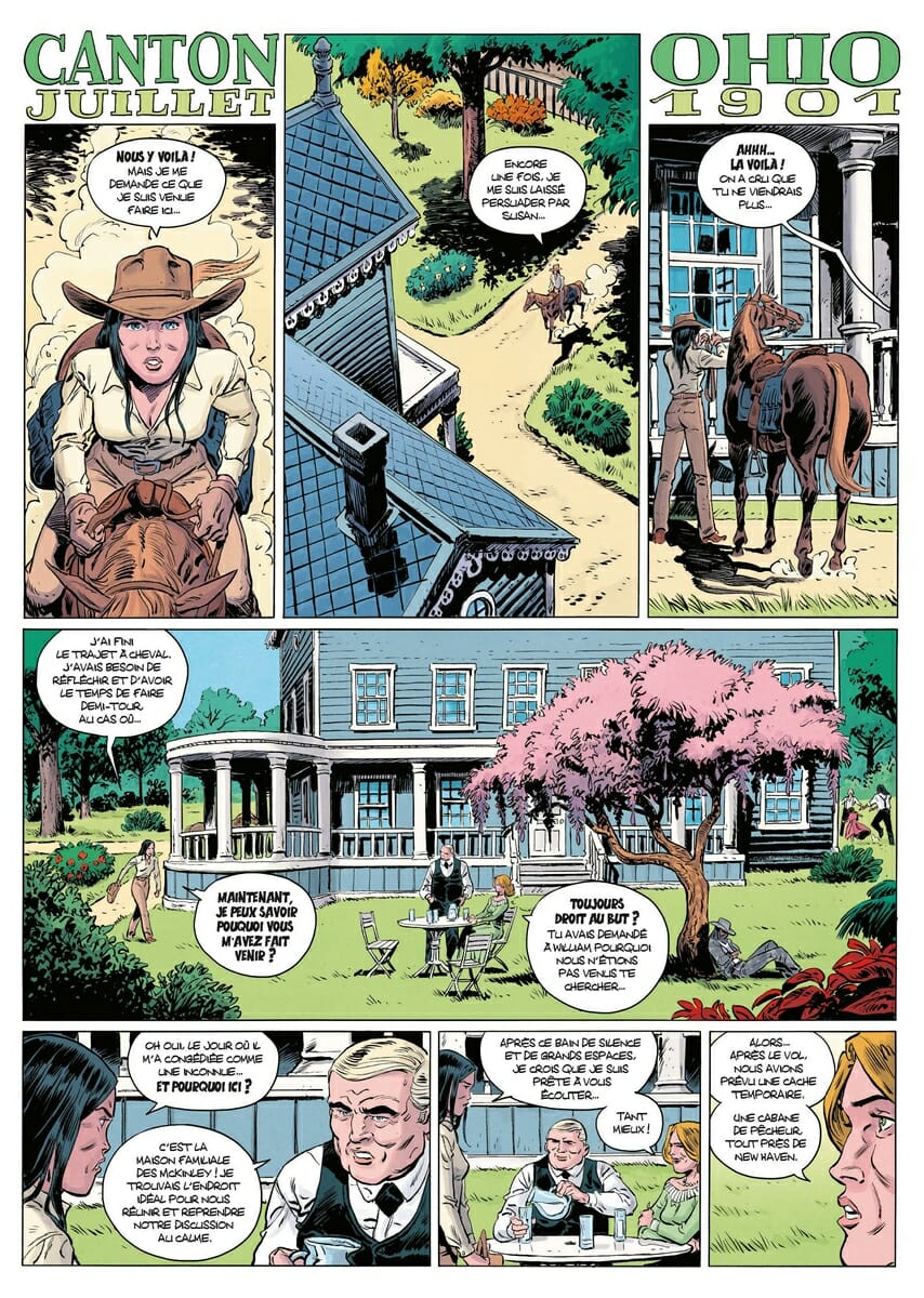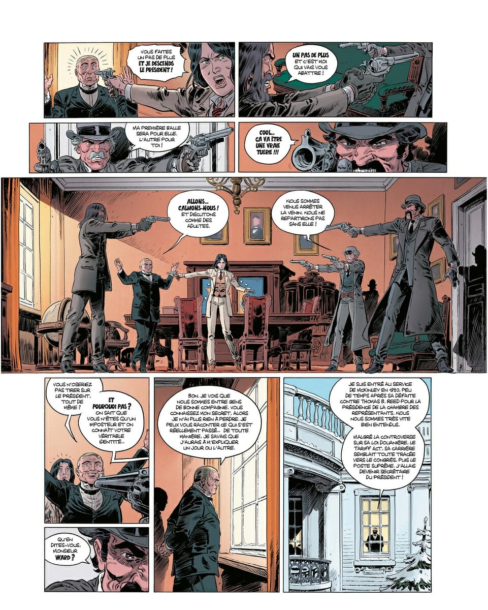Sur le plan scénaristique, tout est une nouvelle fois savamment bien dosé. En s’appuyant sur des faits réels de l’époque (notamment la tragique issue du vingt-cinquième Président des Etats-Unis jusqu’ à l’apparition furtive d’un certain Théodore Roosevelt… ), Laurent Astier allie parfaitement fiction et véritables événements de l’Histoire. L’auteur a incontestablement fourni un travail de recherches approfondies alimentant la crédibilité des périodes visitées par son héroïne.