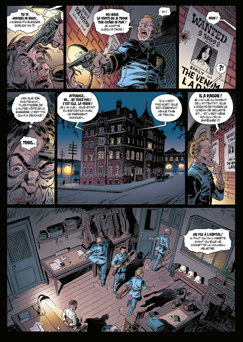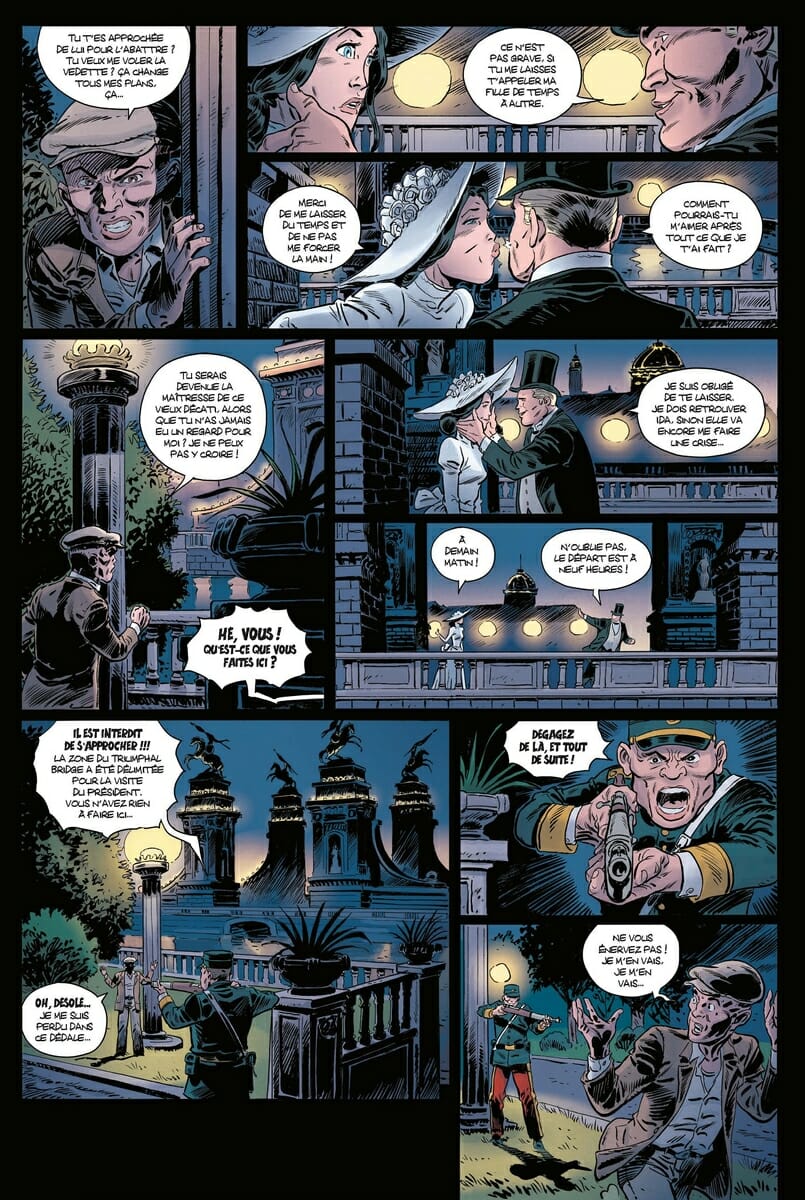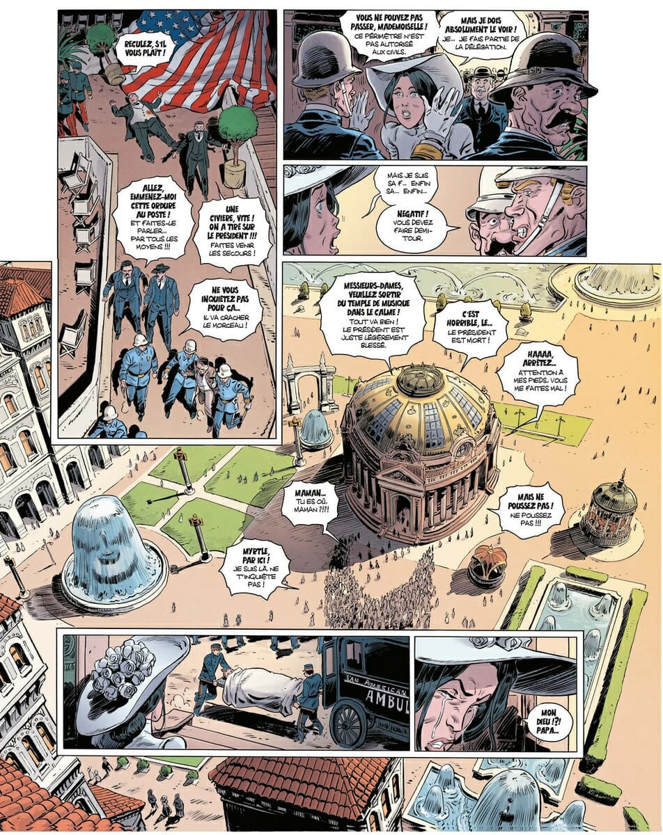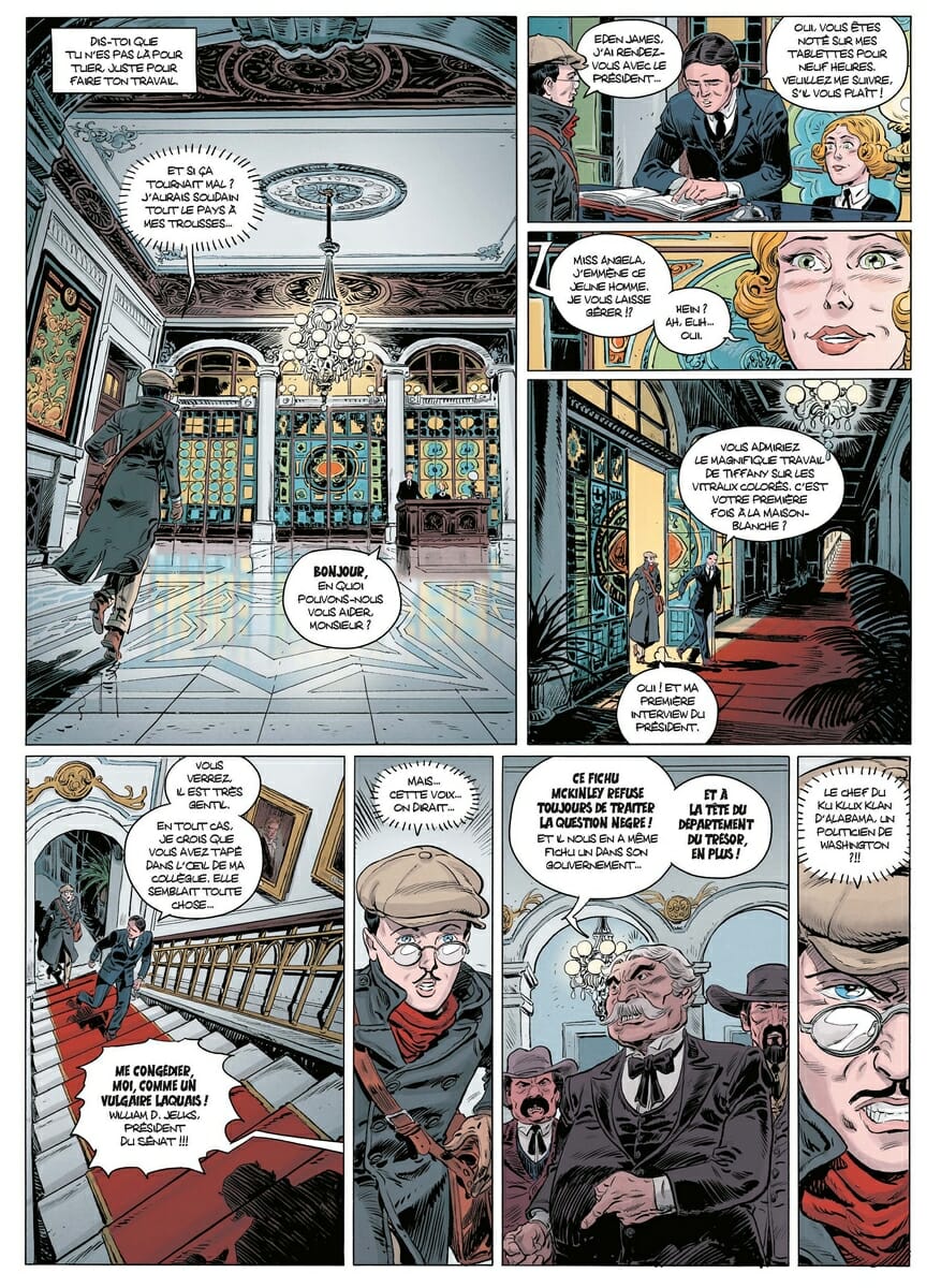 Sur le plan scénaristique, tout est une nouvelle fois savamment bien dosé. En s’appuyant sur des faits réels de l’époque (notamment la tragique issue du vingt-cinquième Président des Etats-Unis jusqu’ à l’apparition furtive d’un certain Théodore Roosevelt… ), Laurent Astier allie parfaitement fiction et véritables événements de l’Histoire. L’auteur a incontestablement fourni un travail de recherches approfondies alimentant la crédibilité des périodes visitées par son héroïne.