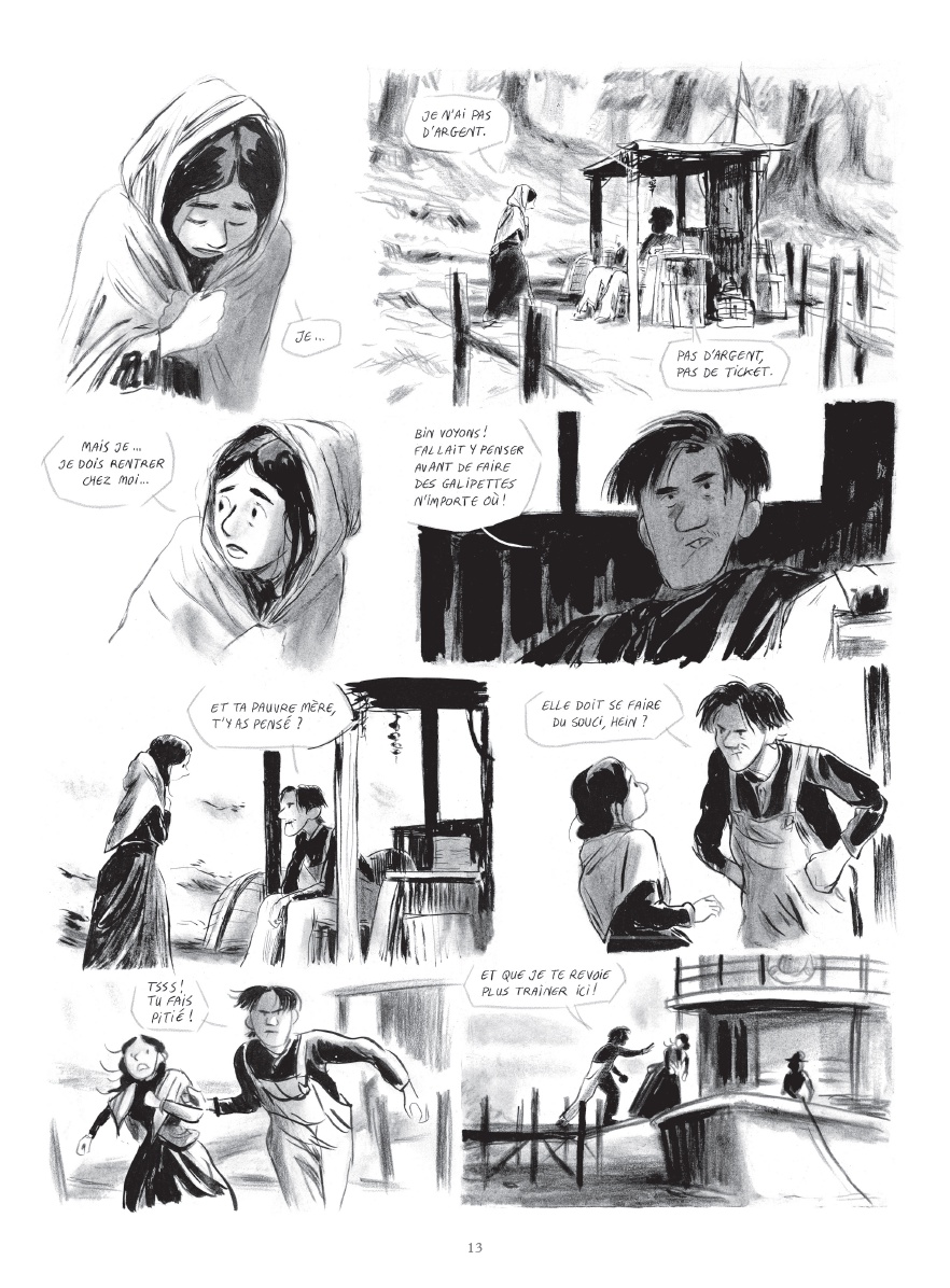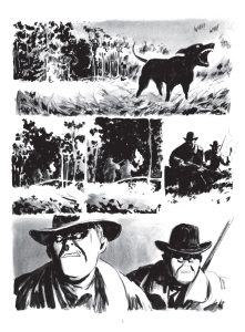 Le trait de Glen Chapron fait le reste. Il propose un noir et blanc maîtrisé, parfois pointilliste dans la restitution de somptueux paysages. Au rythme des scènes d’action ou de pure contemplation, il alterne savamment des encrages de noirs profonds et des lavis de gris et installe un découpage dynamique.