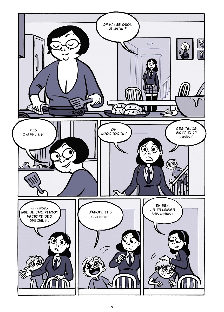 Comme pour Un été d’enfer – récit autobiographique – Vera Brosgol choisit pour personnage principal, une adolescente d’origine russe. Elle même issue de ce grand pays européen, elle connait parfaitement les difficultés d’intégration et les problèmes liés au déracinement.