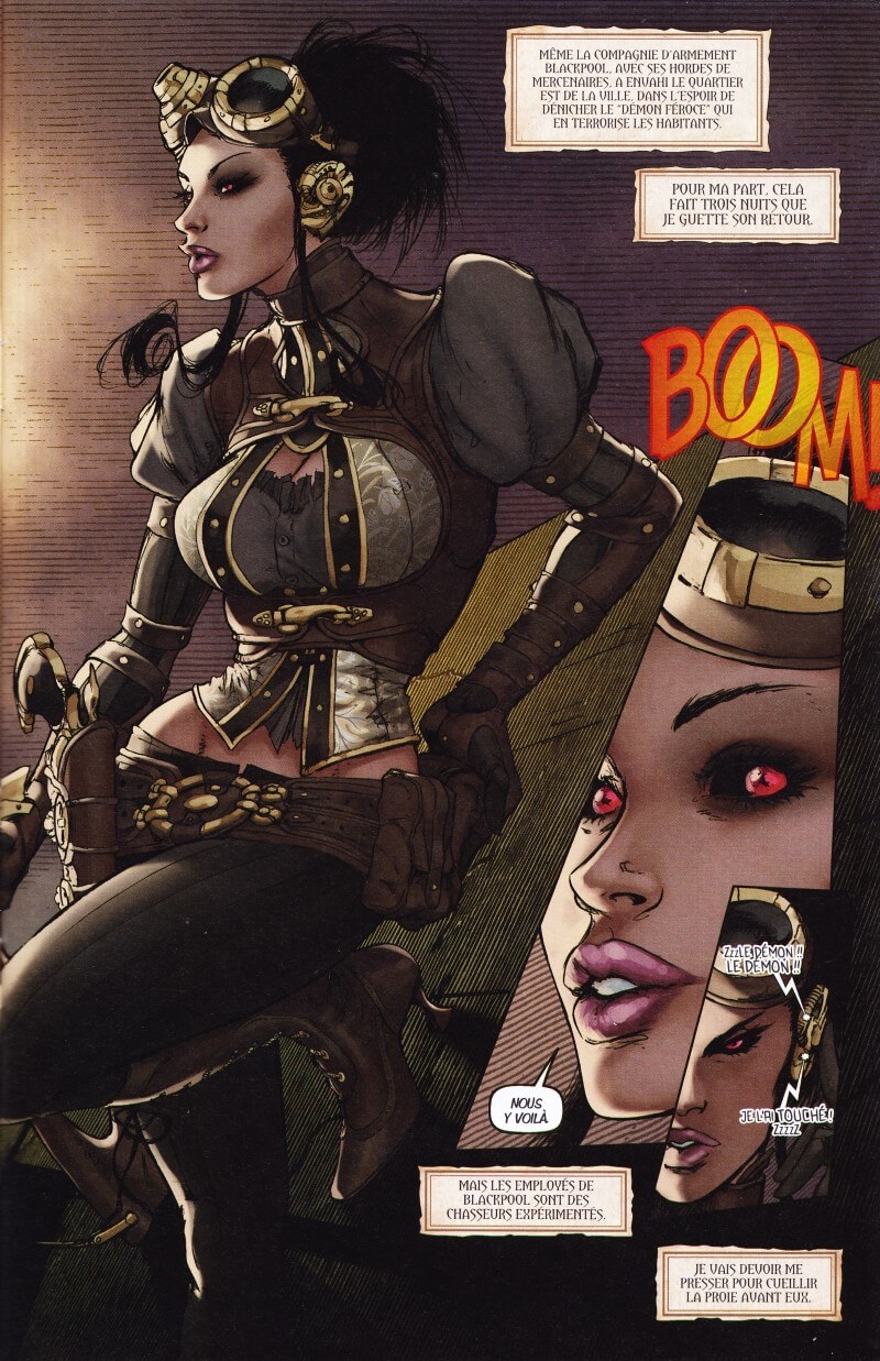 Résumé de l’éditeur : Elle est l’unique survivante d’une terrible expérience qui l’a laissée avec deux bras mécaniques. N’ayant aucun souvenir de sa captivité ou de son existence passée, elle s’est construit une nouvelle vie d’aventurière et de détective privée. Elle use de ses capacités uniques pour agir là où les autorités en sont incapables. Mais la quête de son passé perdu ne s’arrête jamais. Les journaux l’ont appelée : » Lady Mechanika » ! Nouvelle pépite de Joe Benitez, Lady Mechanika raconte les chroniques d’une jeune héroïne forte mais tourmentée. Une véritable quête d’identité dans une Angleterre victorienne revisitée et très steampunk, où la magie et la superstition se confrontent aux découvertes scientifiques. Un premier arc en deux tomes.