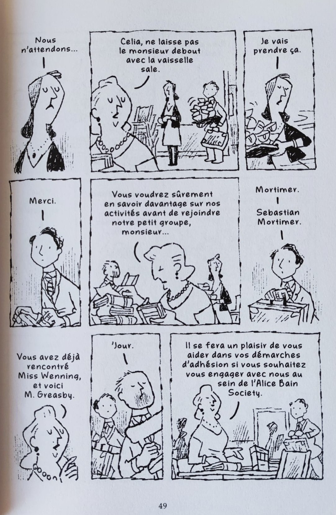 Sebastian n’a pas le temps. Il doit absolument voir Mrs Doveshall pour lui vendre des encyclopédies Atlas. Il faut souligner qu’il n’est en ville que pour quelques jours et qu’il doit ensuite rentrer chez lui où l’attend sa femme, grande lectrice de romans.