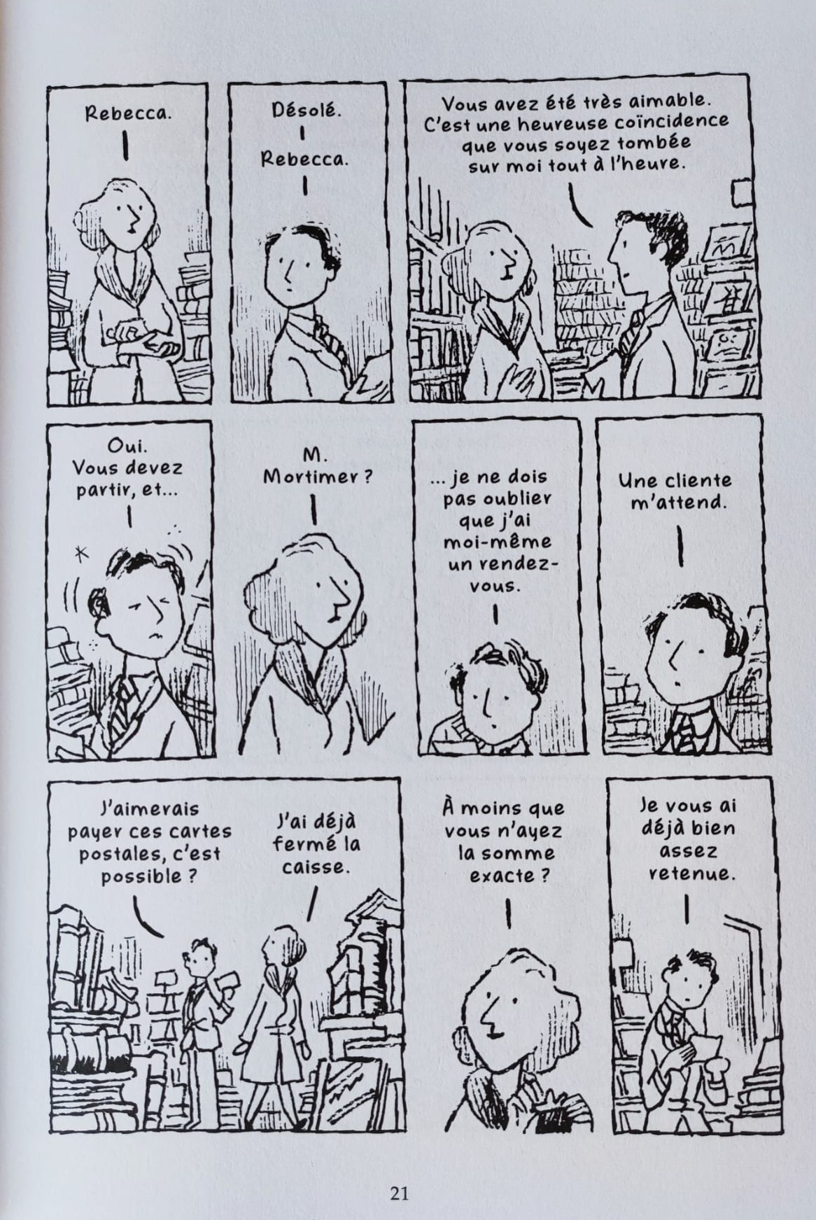 Il se réveille après une petite perte de connaissance. En face de lui, Rebecca, propriétaire de la librairie Fulgents. La libraire est la lumière après ce noir.