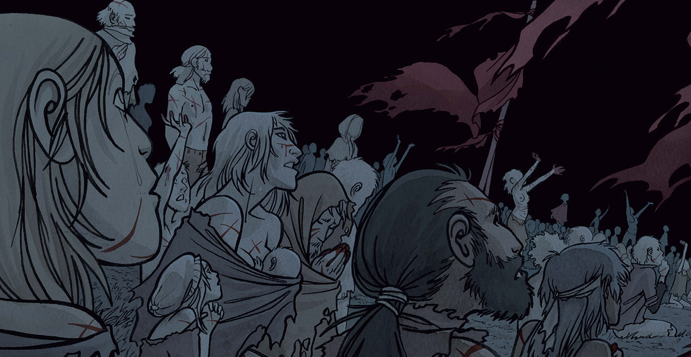 Le temps est passé et plusieurs générations se sont succédé. Les terriens d’aujourd’hui sont presque redevenus comme à l’origine de l’Humanité. Tels des êtres primitifs, ils s’appuient, malgré tout, sur des contes et légendes qui font de Mars le paradis. Condamnés à errer dans ce qu’ils comparent à l’enfer, hommes, femmes et enfants survivent sans beaucoup d’optimisme pour l’avenir.