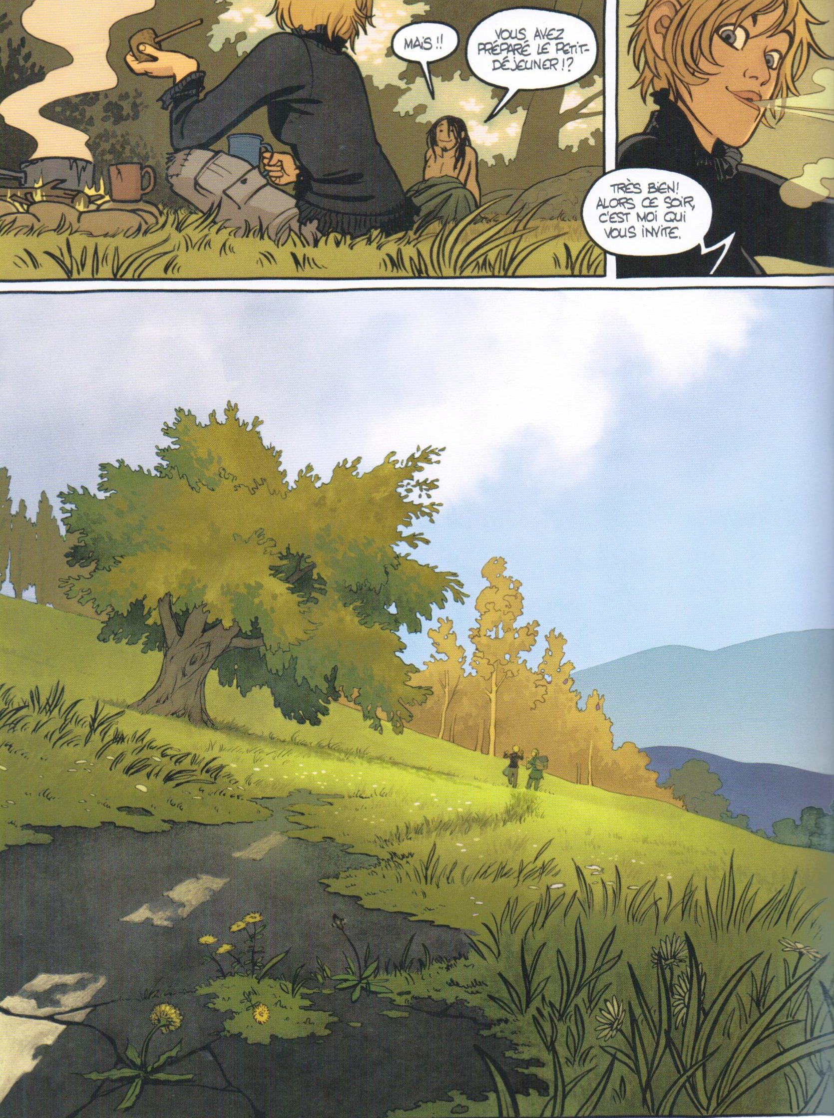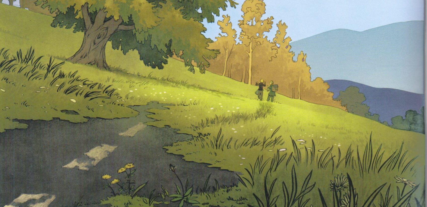 Des les premières planches, on comprend qu’on a affaire à un monde où l’apocalypse a fait son oeuvre. Mais la sensibilité de Mobidic ne va pas nous offrir de décors ou règnent destruction et chaos comme il est de coutume. C’est bien la nature qui domine. La végétation recouvre les routes, les panneaux de signalisation ou autre centre commercial. Comme si la disparition d’une partie de l’humanité avait, en fin de compte, sauvée la planète. Tout un symbole…
