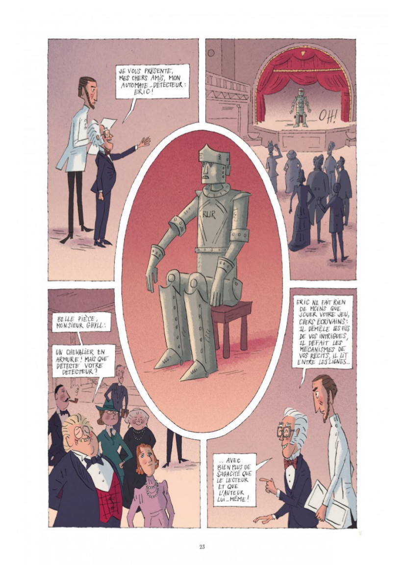 Le soir venu, les convives assistent à une première mondiale : la présentation d’Eric, un robot articulé et doué de parole, inventé par le docteur Zumtod. C’était sans compter sur le meurtre de Ghyll, la nuit suivante…