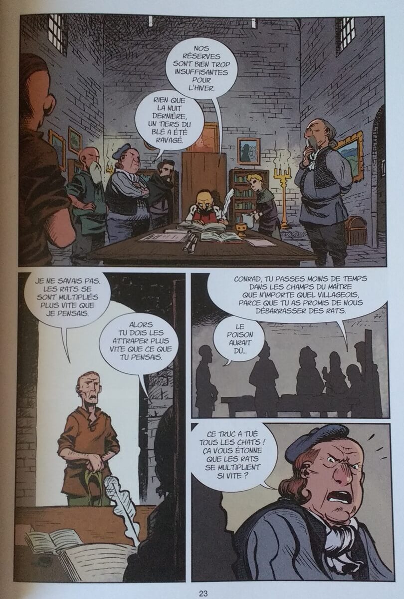 La ville de Hamelin est dans tous ses états : les rats envahissent les rues, s’introduisent dans les maisons et ravagent les réserves alimentaires. Ils se multiplient à grande vitesse et la famine guète la cité. Malgré les poisons distillés un peu partout par Conrad, rien n’y fait.