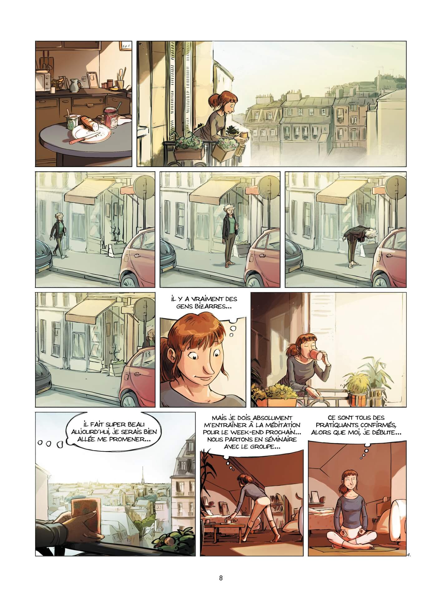 Ainsi les deux auteurs, sans donner de leçons, nous entrainent dans une aventure au cœur de notre moi profond. Par la personnalité de Clémentine, tout le monde peut s’identifier à elle. Célibataire parisienne dont le métier est très prenant, elle essaie de lâcher prise et de se recentrer sur elle. Pas simple quand on court après la vie et son quotidien effréné. Pour cela, elle souhaite participer à un séminaire de méditation comme il en existe des milliers en France. Au passage, Beka glisse un petit tacle à ces pseudos groupes, à leur « gourou » et à leur prix exorbitant.