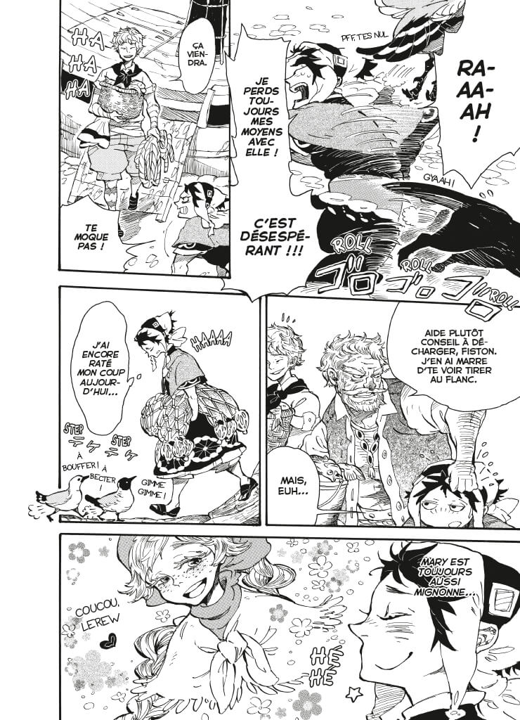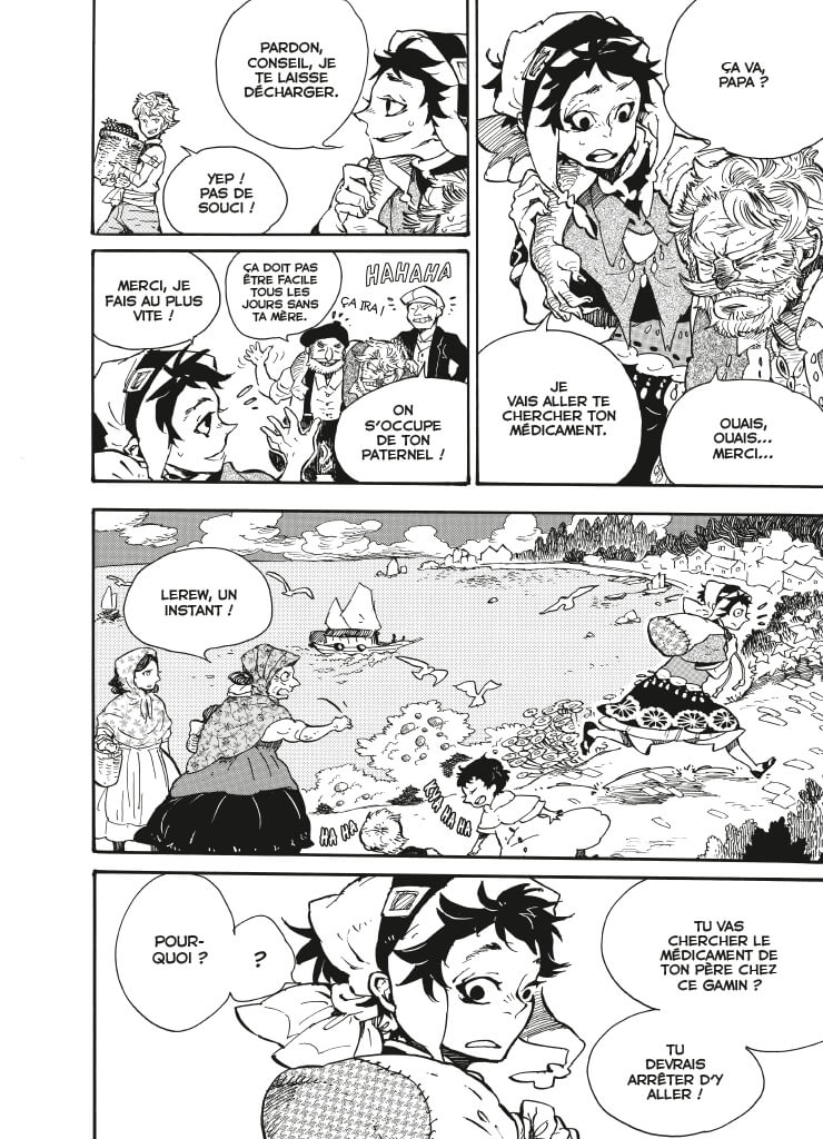 Résumé de l’éditeur : Dans son petit village de pêcheurs perdu sur une côté désolée, Lerew rêve plus volontiers de ravir le cœur de Mary que de partir en mer avec son père. Mais les filets remontent de plus en plus vides, il faut donc se risquer à sortir dans des eaux de plus en plus périlleuses pour les équipages et leurs embarcations. Après un accident qui le laisse plus mort que vif, Lerew est sauvé par un sorcier à la réputation sinistre… L’existence du garçon est bouleversée à jamais : le voici projeté dans un périple qui pourrait aussi bien être une renaissance qu’une malédiction.