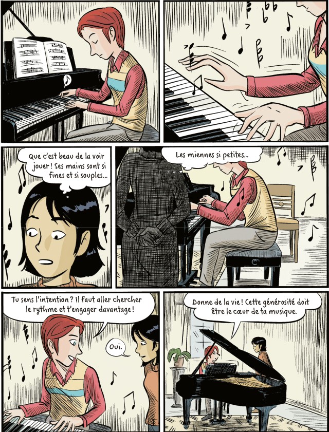 Le Piano de Leipzig fait partie de ces albums qui méritent vraiment qu’on s’y intéresse. En effet, Tian a de façon très habile, et surtout sans que cela soit pesant pour le lecteur, entremêlé petite histoire ou histoire personnelle et grande Histoire avec un H majuscule. Il en résulte un récit personnalisé mais qui permet de mieux comprendre certains faits géopolitiques. La plupart étant d’ordinaire difficilement compréhensibles et bien souvent oubliés par la plupart d’entre nous.