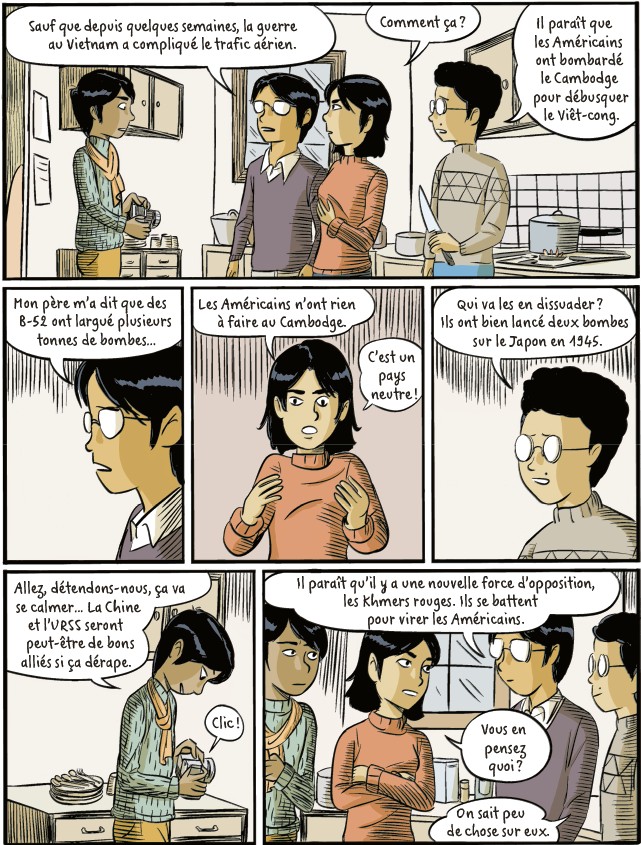Ensemble, elles se sont reconstitué une sorte de famille et se réconfortent en partageant des repas traditionnels de chez elles. Dani profite également d’un peu de temps libre, malgré ses études de piano très prenantes et très exigeante, pour retrouver d’autres étudiants khmers comme elle. Certains sont enfants de diplomates d’autres pays communistes, en poste en Allemagne de l’Est. Ensemble, ils commentent l’actualité politique dans leur région, en particulier la guerre au Vietnam. Mais également l’apparition au Cambodge d’une nouvelle organisation politique, les Khmers rouges, au sujet desquels ils n’ont pour l’instant que très peu d’informations…