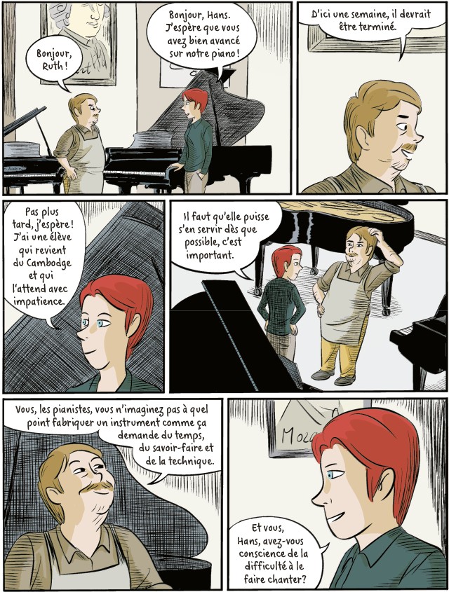 Avec Le Piano de Leipzig, édité chez Gallimard Bande dessinée, Tian nous plonge dans l’inconnu. Celui vécu par Dani, une jeune Cambodgienne prête à tout pour devenir pianiste, en s’exilant pour cela en RDA. Une histoire vraie que l’auteur, cambodgien lui aussi, nous raconte en laissant, dans son récit, une place importante à la géopolitique de la Guerre Froide .