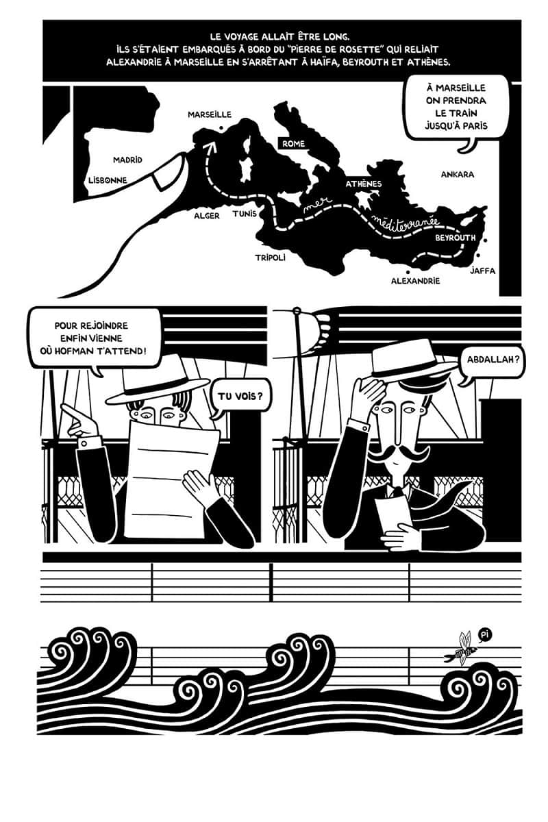 Alors que dans son précédent ouvrage, Mourir, partir, revenir, le jeu des hirondelles (chez Cambourakis), l’auteur franco-libanaise nous racontait son enfance à Beyrouth, dans la même veine que Persépolis de Marjane Satrapi ; Le piano oriental nous fait voyager dans son pays quelques décennies auparavant. Pour cela, elle dépeint Abdallah Kamanja, un personnage fantasque, employé par la Compagnie des Chemins de Fer Libanais, féru de musique, virtuose du piano. Inventeur de génie, il met au point un piano capable de jouer des quarts de tons. Cette folie-douce, sa joie de vivre, lui permettent de créer, d’observer et d’accroître sa curiosité. Après l’invention de son instrument, il est invité à Vienne par les Hofman, célèbres facteurs de pianos. Accompagné de Victor, son ami, il part vers la capitale autrichienne, via Marseille. Ce fabuleux voyage va se muer en un périple fou.