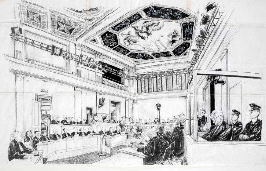 Entre octobre 1997 et avril 1998, Riss alors dessinateur de Charlie Hebdo mais pas encore son directeur, assiste au procès de Maurice Papon. Durant 7 mois, il a pris des notes et réalisé des croquis comme un vrai dessinateur de procès – comme l’était aussi son ami Tignous – pendant les 95 audiences qui devaient faire toute la lumière sur le rôle volontaire ou non et les décisions sciemment prises ou non par l’ancien secrétaire général de la Préfecture de Paris sous l’Occupation.