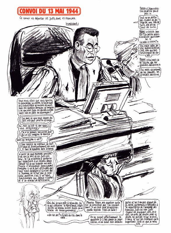Pour commémorer la tenue du procès de Maurice Papon il y a 20 ans aux assises de la Gironde, les éditions Les échappés rééditent Le procès Papon, un fonctionnaire de Vichy au service de la Shoah, un album mémoriel signé Riss.
