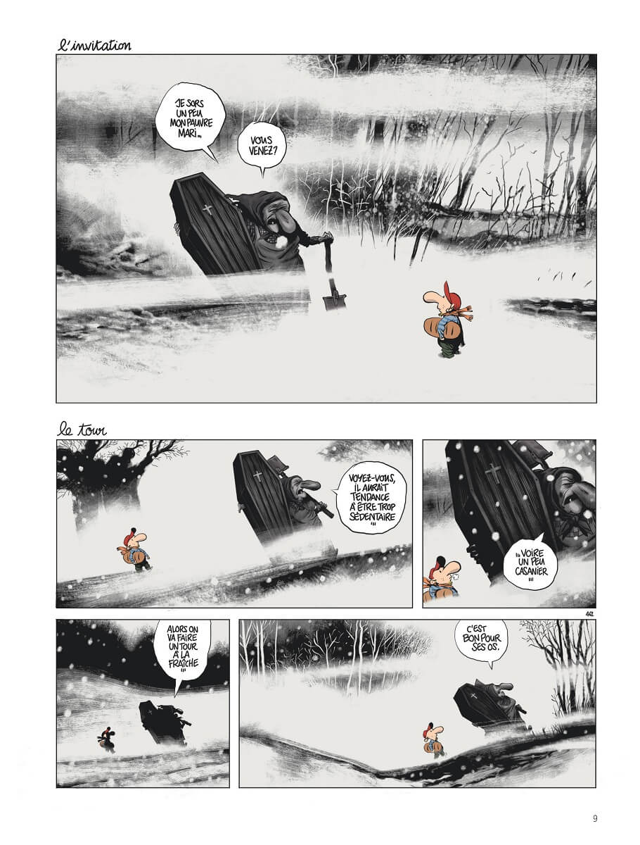 Le couple allait alors découvrir tout un univers campagnard, entre déprime et calme, entre nature et vide culturel. En plus de leur chat – le fameux Speed – ils allaient faire la connaissance de voisins pour le moins surprenants : M. Henri, le propriétaire de leur maison, un ermite que consulte fréquemment Manu, M. Loupiot l’épicier, mais surtout Mme Mortemont, une vieille agricultrice bourrue qui deviendra la marraine de leur fille, Capucine. Parce que oui, le couple accueille une fillette qui grandit au fil des six albums.