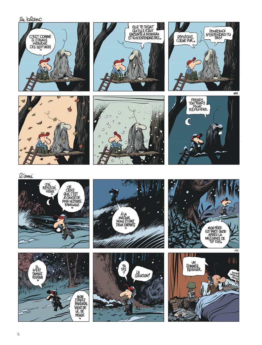 On est surtout surpris par les errements du dessinateur. On le voyait dans les tomes précédents, mais là c’est encore plus fort. En pleine déprime face à son nouvelle enfant, il rejette aussi le monde de la bande dessinée. Comme le fait aujourd’hui le talentueux Manu Larcenet.