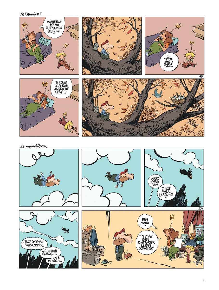 Résumé de l’éditeur : Voilà 10 ans que Manu Larssinet, Mariette et tout le petit monde du Retour à la terre n’avaient pas donné signe de vie… Mariette attend un deuxième enfant. Madame Mortemont a appris à utiliser un Samsong ® et envoie des emojis énigmatiques. Manu, lui, part à la recherche de son père sur Internet et décide d’arrêter la bande dessinée. Quant à Philippe, l’éditeur-adjoint, il se lance dans un voyage téméraire en direction des Ravenelles… Un 6e tome qui réserve bien des surprises !