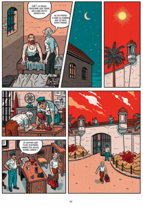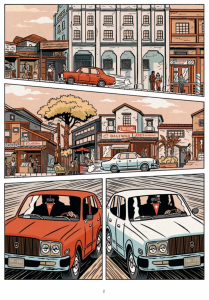 Avec une ligne claire franco-belge, et une palette de couleurs chaudes assez restreinte, Toni Carbos livre un travail graphique parfaitement honnête, au style un rien désuet, mais qui matche parfaitement à l’époque qu’il décrit. Une ligne sobre, précise, et toute en rondeur qui tire gentiment vers le style « gros nez ». La mise en page se compose de gaufriers à huit ou neuf cases, tantôt rectilignes, tantôt de biseau.