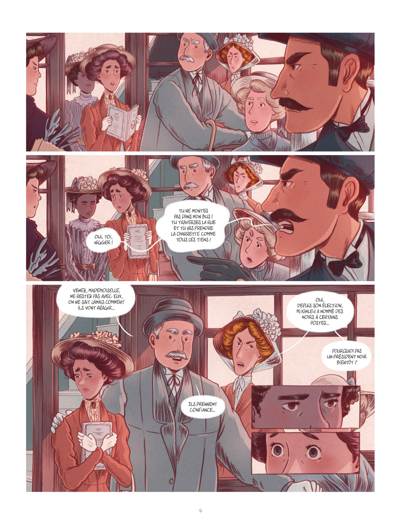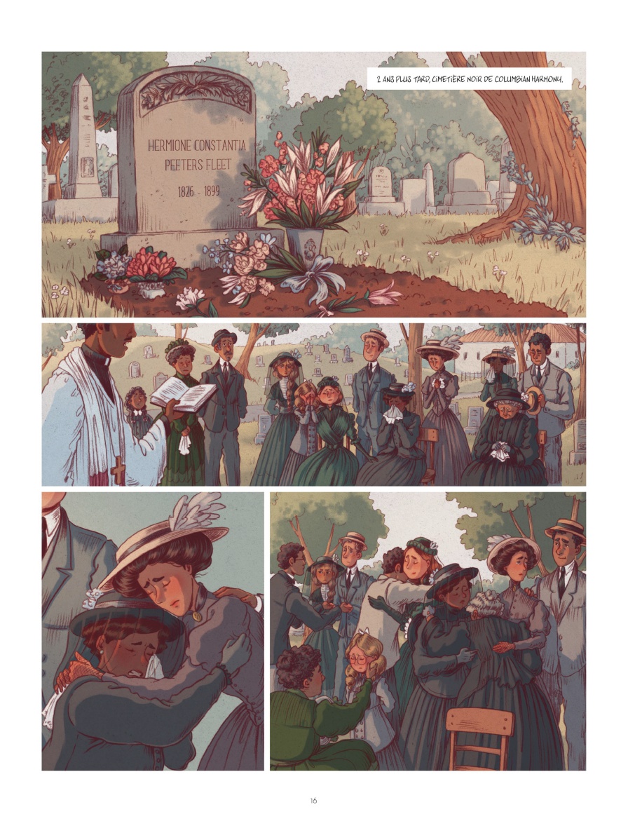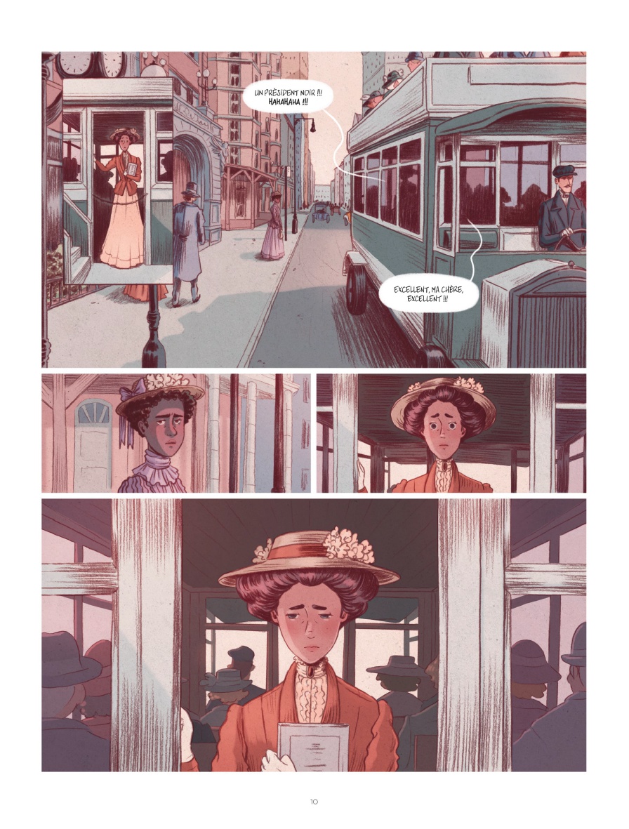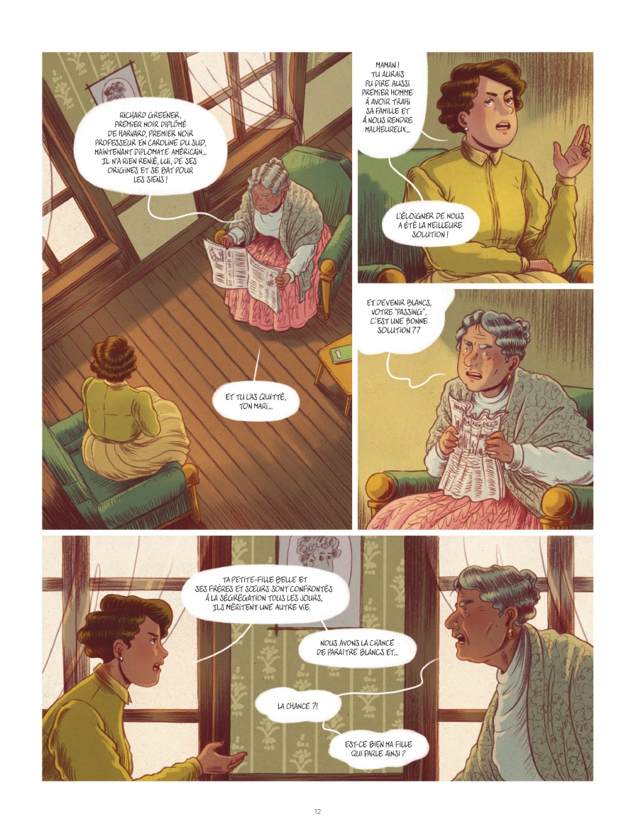 Pour ces personnes métisses désireuses de contourner cette loi et d’accéder au rêve américain, il y avait le « passing », c’est-à-dire se déclarer blanc, et donc renier ses origines. C’est ce que fit une certaine Belle Greener, en 1898. C’est la vie et le parcours intime de cette femme (elle a réellement existé) que retracent dans ce joli roman graphique Nina Jacqmin et Nicolas Antona.