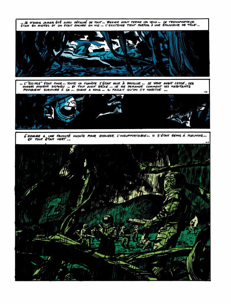 L’univers hostile est bien décrit : une jungle poisseuse et humide; un peu comme dans les films américains sur le Vietnam (Platoon, Apocalypse now).