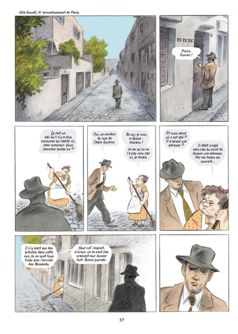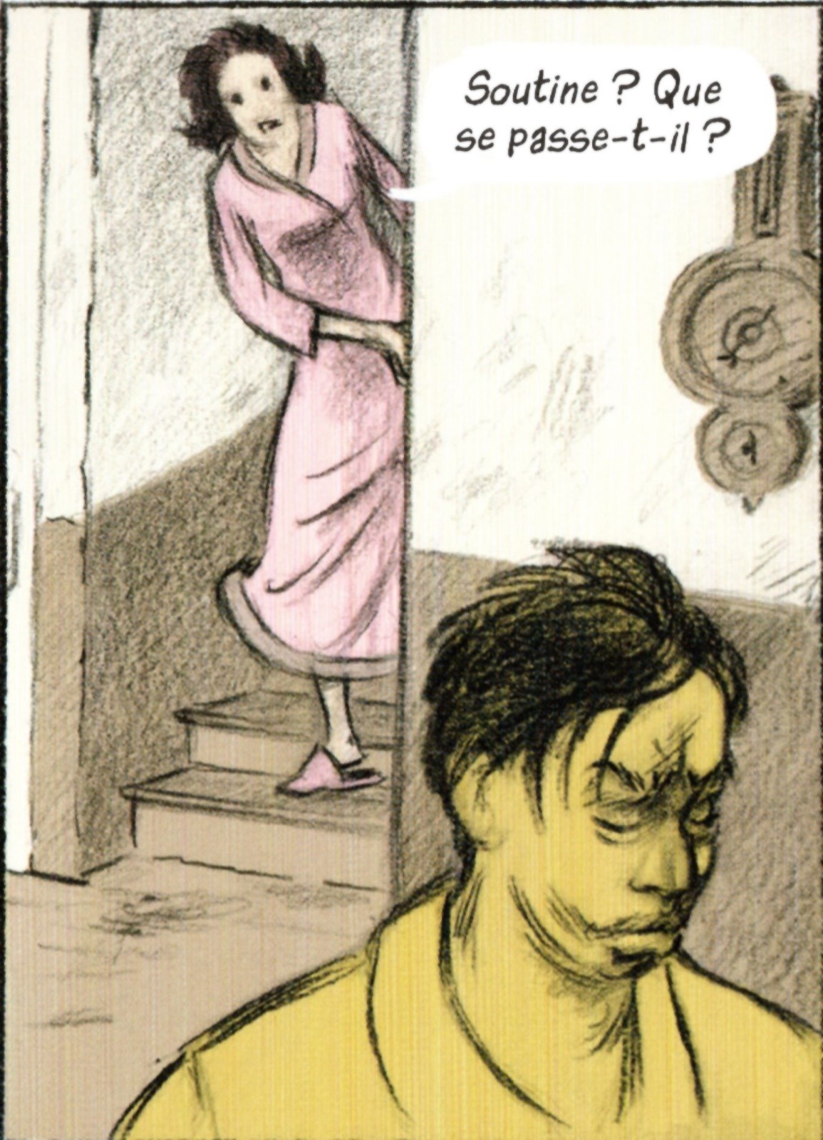 Il ne s’agit pas pour autant d’une bande dessinée historique, comme le rappelle Fabien Grolleau en postface mais plutôt « d’un récit de fiction autour des derniers jours de Soutine: sa relation à la nature, son amitié avec le jeune écolier Marcel Varvou et la tragique issue de sa maladie ».