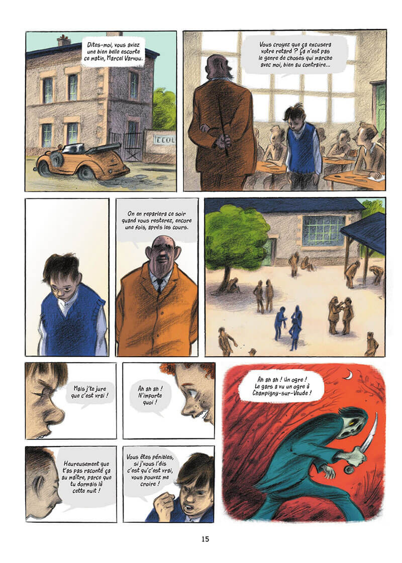 Résumé de l’éditeur : Printemps 1942. Pour Chaïm Soutine, peintre juif russe, Paris est devenue trop risquée. Si l’exil à la campagne s’impose aussi pour sa santé, c’est finalement sa créativité qui en tirera le plus grand bénéfice ! La Gestapo semble loin, Soutine trouve en Marcel, le fils du garde champêtre, un modèle particulièrement inspirant. Le gamin qui restera « l’écolier bleu » endure l’humeur de l’artiste et parvient à lui faire tomber peu à peu le masque de l’ogre…