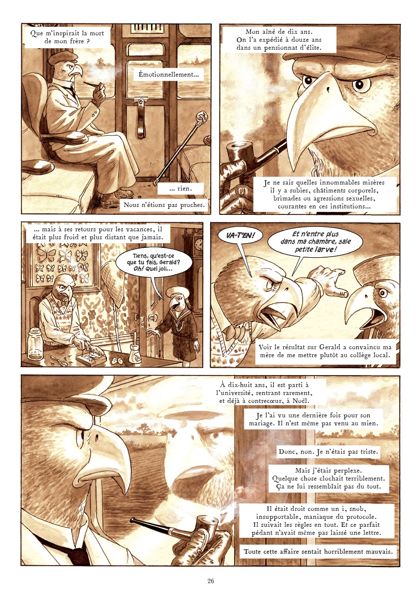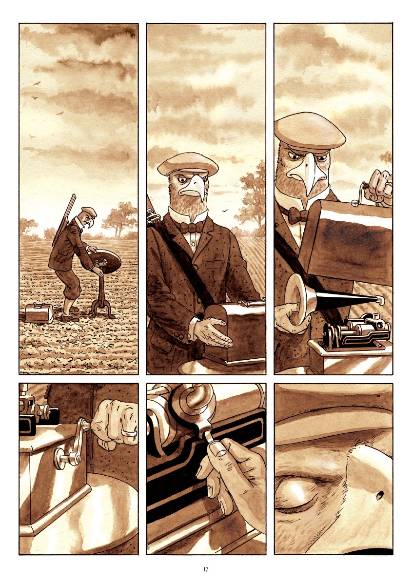 Visuellement, ce changement est marqué par une sublime colorisation sépia qui rappelle immédiatement les daguerréotypes. Réalisée à l’aquarelle, elle donne immédiatement une ambiance délicieusement surannée à l’aventure.
