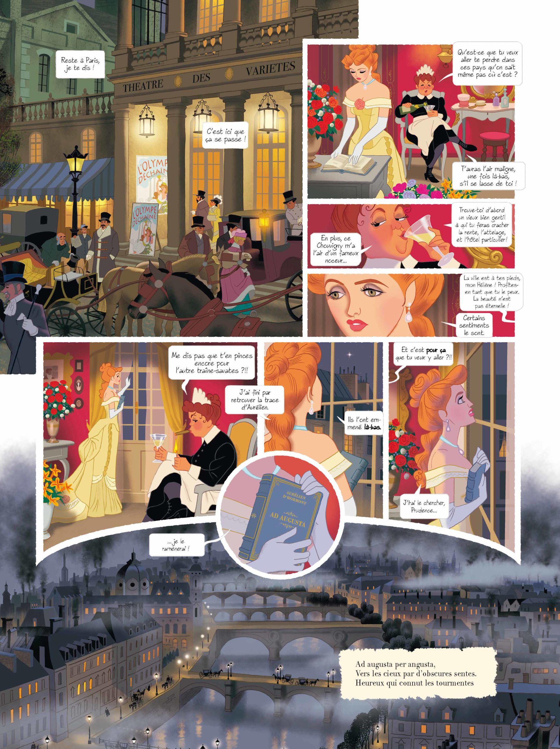Au centre du récit, il y a Hélène, chanteuse d’opéra-bouffe, femme de caractère et amoureuse transi du poète Armand qu’elle va chercher dans les étoiles… Ce personnage (inspiré de Nana ?) est une grande héroïne, belle et forte à la fois. Difficile d’éviter quand on emmène ses personnages sur la planète Vénus…