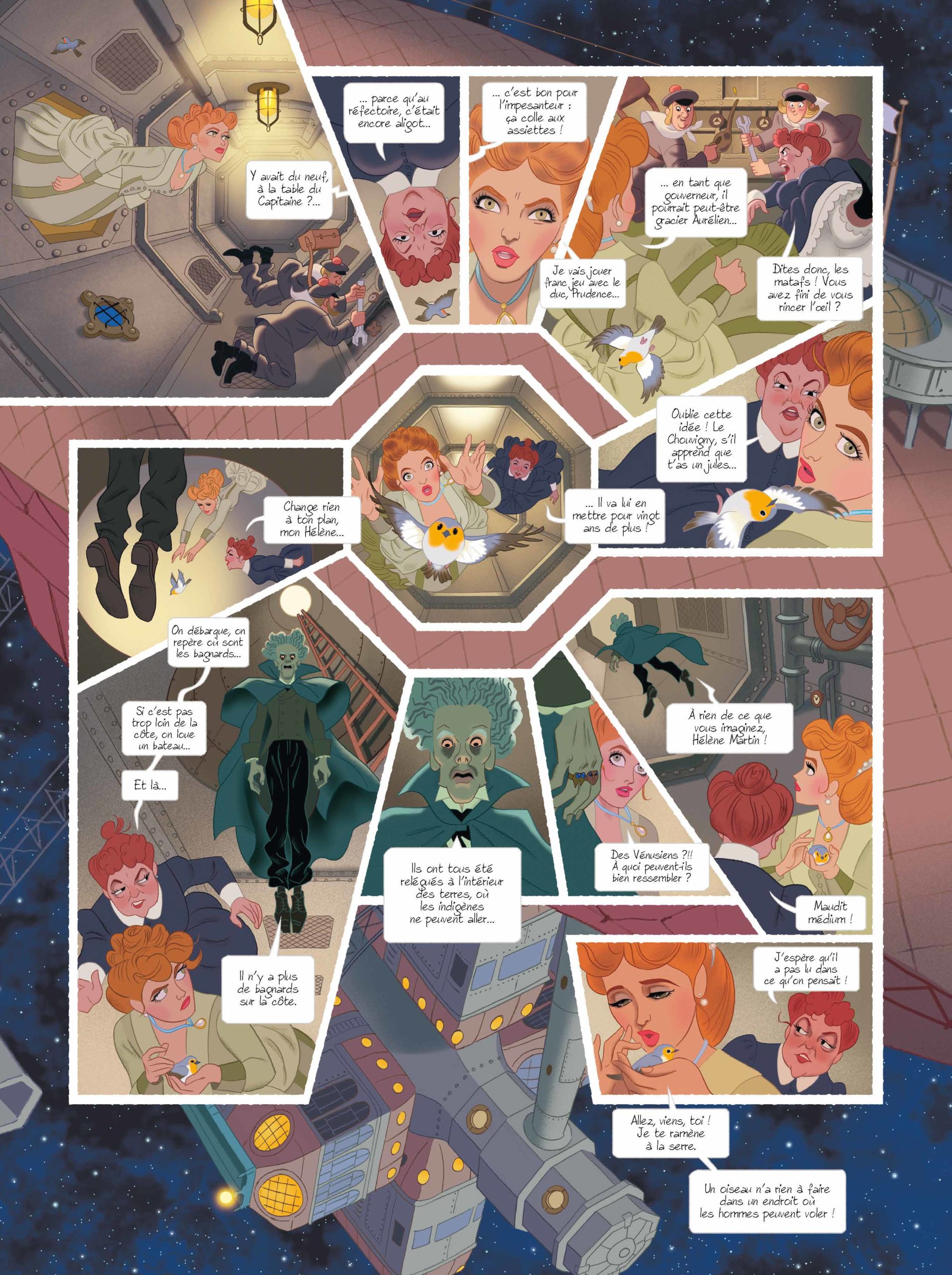 Le duo ainsi constitué s’est attelé au travail, afin d’offrir un récit romanesque, fantaisiste et cohérent à la fois. Nous suivons donc la belle Hélène Martin débarquant sur Vénus avec l’inquiétant Duc de Chouvigny.