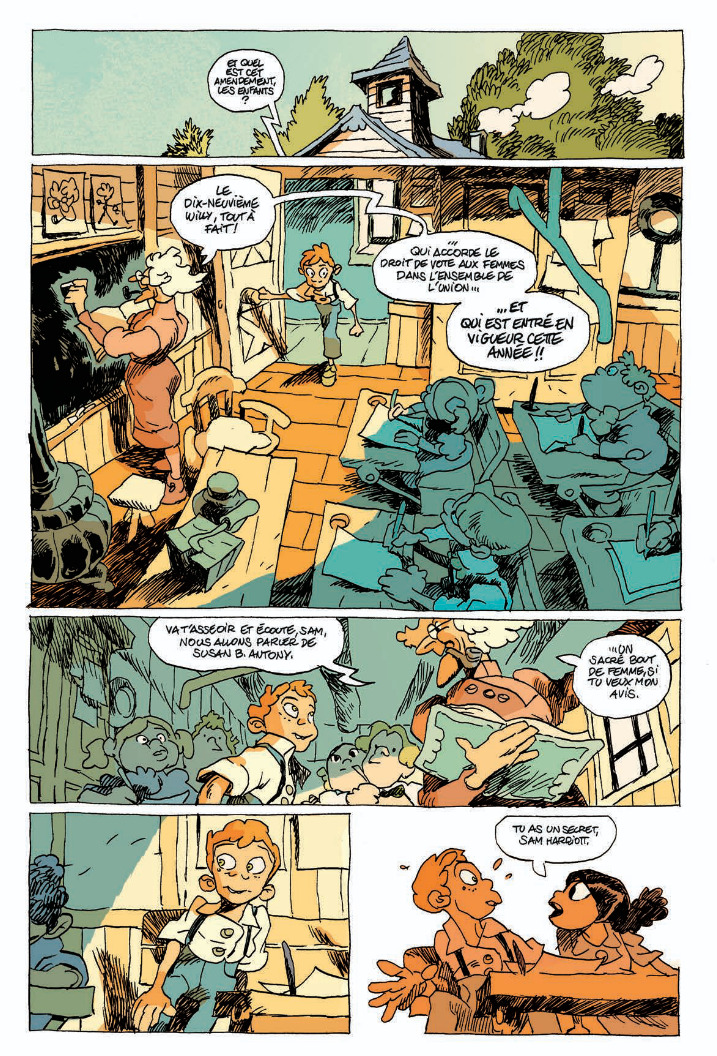 Et Cyrille Pomès en bande dessinée jeunesse, il n’y a pas mieux ! L’auteur du Fils de l’Ursari et de Moon déploie tout son talent graphique pour donner un maximum d’envie aux lecteurs d’embarquer dans cette folle aventure.