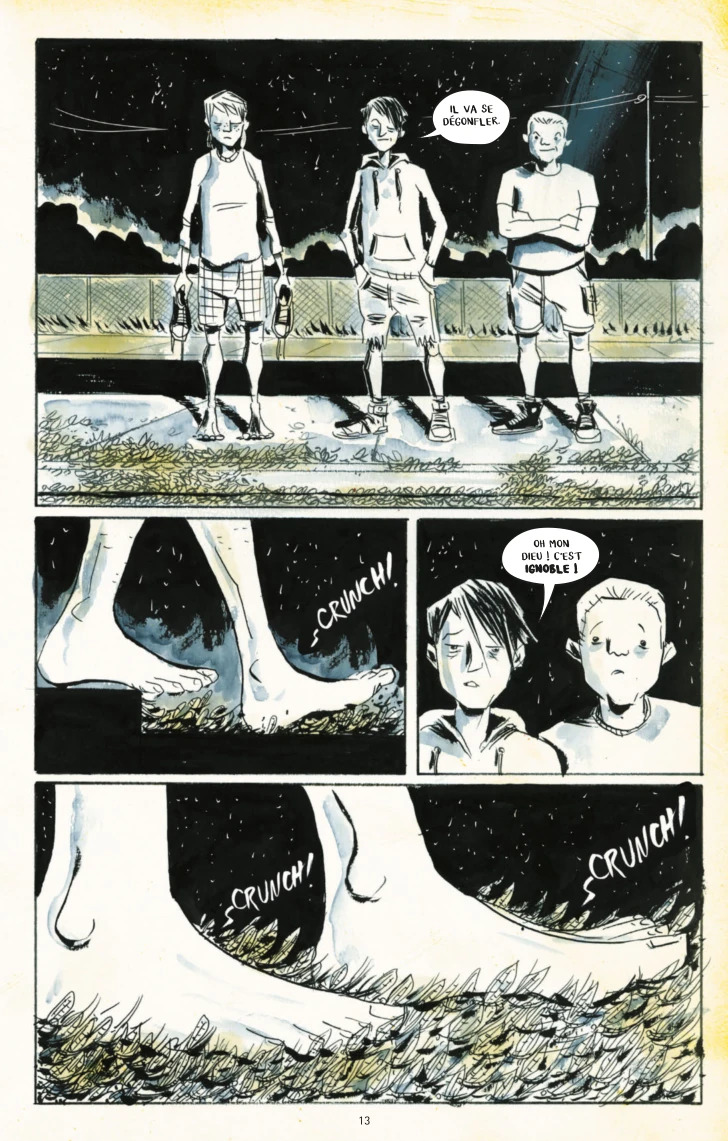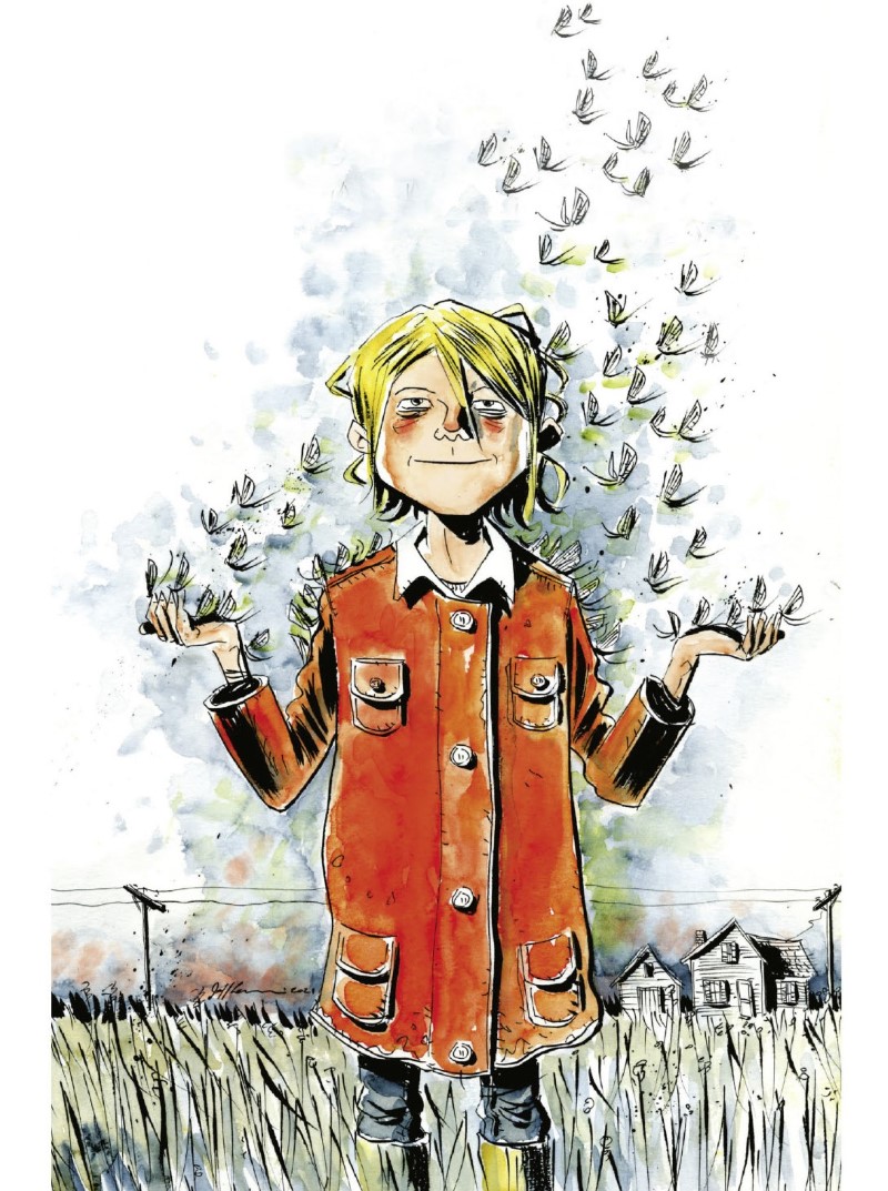 Résumé de l’éditeur : Élevée par son père, agriculteur à Bell River, au coeur de l’Ontario, Franny Fox mène une vie morne d’adolescente mal dans sa peau. Alors que la bourgade est envahie de millions d’insectes, un drame surgit. Un malfrat en fuite abat par erreur un jeune camarade de Fran. Recherché, le criminel, également blessé, se réfugie dans la ferme familiale. Et alors qu’il se métamorphose physiquement, une curieuse amitié va pourtant naitre entre Fran et lui. Suivant au plus près le rythme de parution aux USA (la série débutera en juillet et paraitra en six fascicules sur un an), cette nouvelle mini-série ambitieuse de Jeff Lemire ravira ses amateurs et sera une merveilleuse porte d’entrée pour ceux qui ne le connaisse pas encore. Après le succès du Labyrinthe inachevé, Jeff Lemire, au sommet de son art, revient sur ses terres de prédilection, la campagne canadienne, l’enfance et le fantastique.