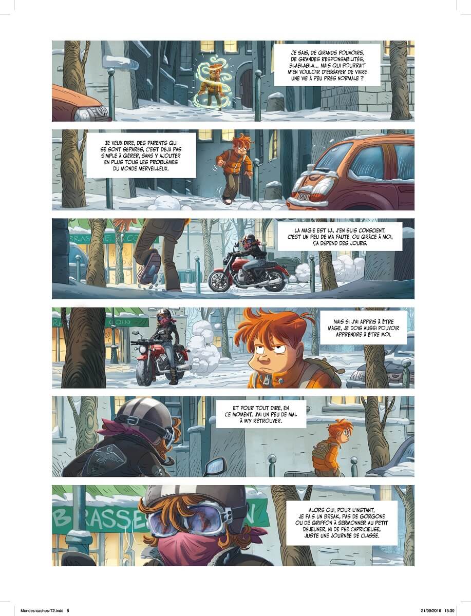 Après un très bon premier bon premier volume, Denis-Pierre Filippi et Silvio Camboni poursuivent les aventures de Grégoire dans Les mondes cachés. Pour ce nouvel album, l’adolescent-mage croise le route de Emeline, une fille qui a aussi des pouvoirs surnaturels, chassée par La confrérie secrète.