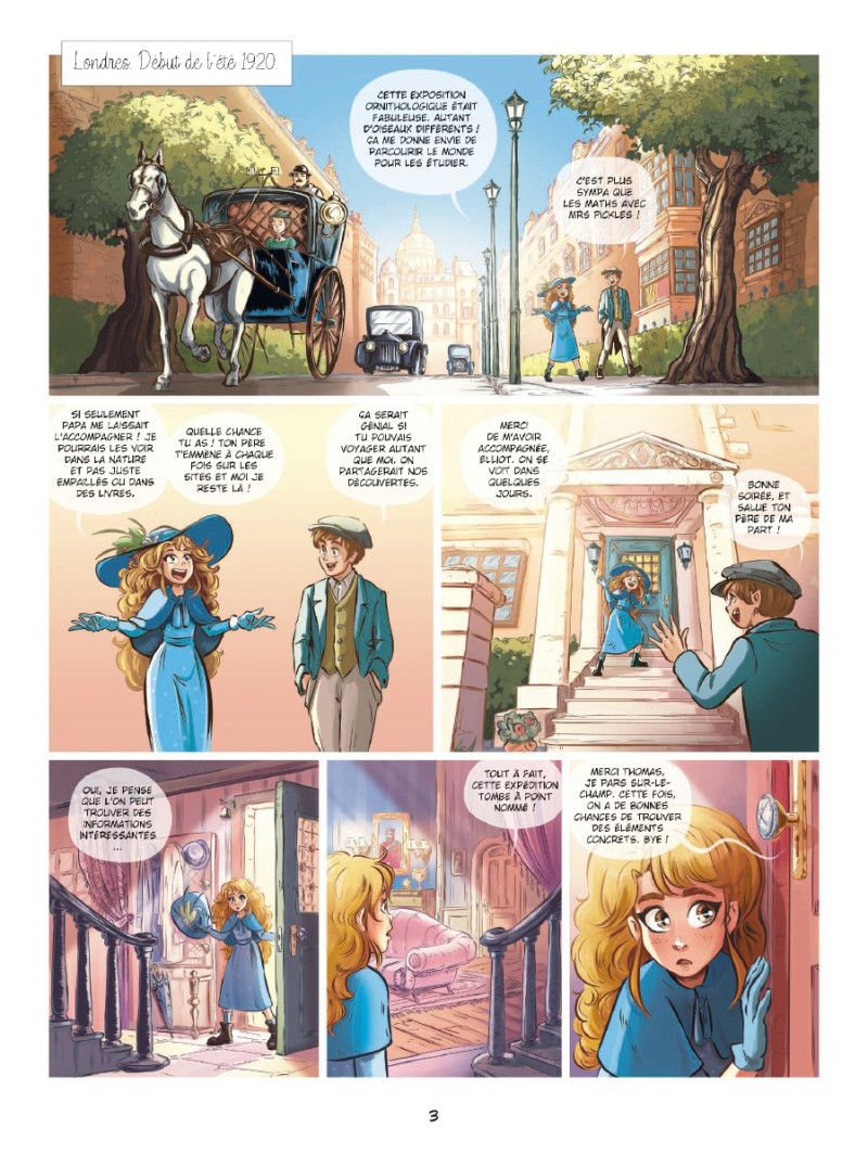 Amy est prête à le suivre. Mais son père ne veut pas. Elle est encore trop jeune pour l’assister. Elle insiste. Il capitule. Et les voilà embarqués sur le premier paquebot dès le lendemain. Trop tard pour Amy de dire au-revoir à Elliot, son ami, passionné comme elle de sciences et d’Histoire.
