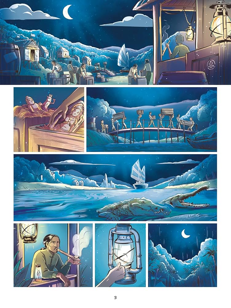Sur le bateau, les deux amis s’amusent mais s’instruisent. Ils ont des cours donnés par un précepteur. Amy découvre ainsi l’histoire du Tonkin, Saïgon ou le Laos.