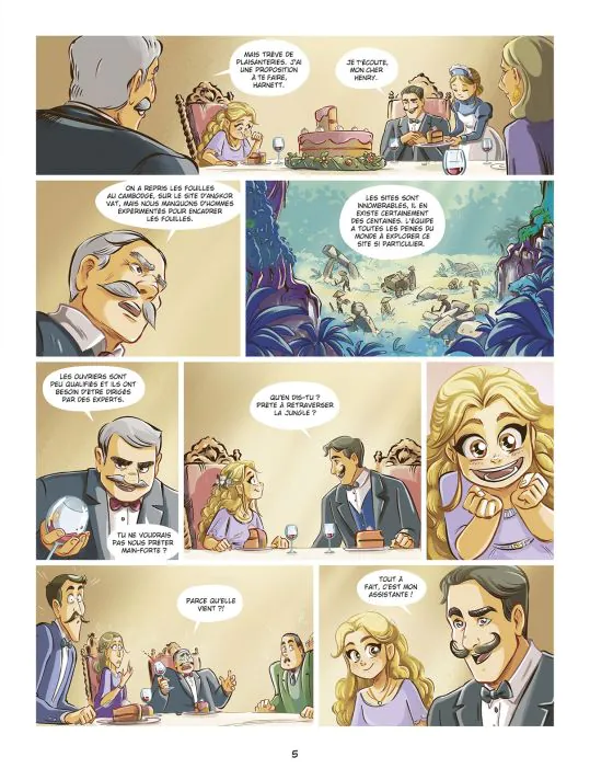 Elle est alors accueillie par Sophal, une jeune danseuse, et Maenong, une adorable éléphante. Si les premiers jours vont être consacrés aux fouilles et aux recensements des trésors du site, rapidement, Amy va découvrir qu’ici aussi les trafiquants d’antiquités sévissent et qu’il faut à tout prix les arrêter.