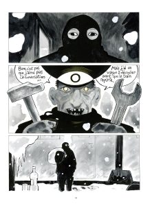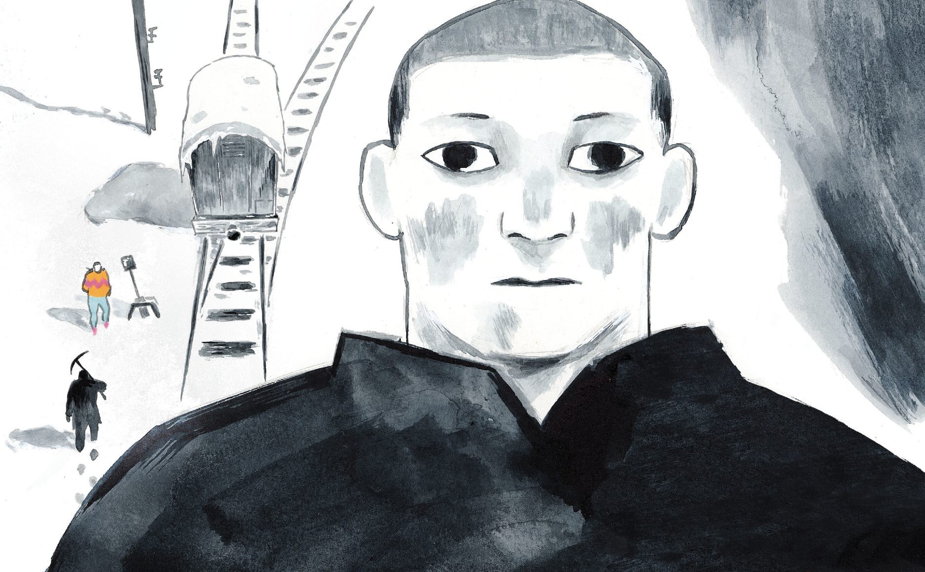 Les peintures de Thomas Azuelos (La ZAD c’est plus grand que nous, Prénom Inna, une enfance en Ukraine) installent la froideur et la dureté. le blanc de la neige, ces montagnes dorées qui ne produisent plus de quartz mais qui ont gardé la couleur maronnasse… Et ces personnages marqués par la vie, par la guerre, ces visages tantôt fatalistes, tantôt aspirant à autre chose. La fin est marquante, la boucle est bouclée, en toute logique, froidement.