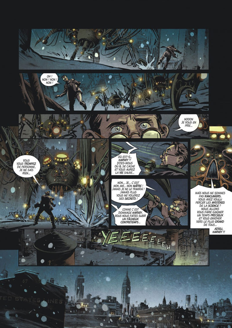 Le scénario de l’auteur du Complexe du chimpanzé (avec Jean-Michel Ponzio, Dargaud) lorgne aussi vers les univers de HG Wells, de George Orwell, de Jules Verne ou de EP Jacobs.