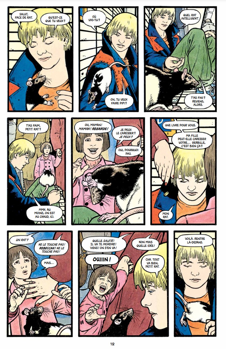Et dans le cas présent, en abordant le thème de l’inceste, on le sait, certaines pages seront éprouvantes. Mais on peut faire confiance à Bryan Talbot. Jamais obscène, son écriture brille par son intelligence et permet de réfléchir tout en véhiculant de l’émotion. Alors ne nous étonnons pas, l’Histoire d’un vilain rat est bien une œuvre centrale dans la bibliographie de l’artiste. Et on pourrait même dire qu’il s’agit d’une œuvre utile qui dénonce autant qu’elle aide. D’ailleurs, la postface, le dossier et « les lien utiles » présents en fin d’ouvrage en témoignent. Mais on s’en doute, la lecture de cette histoire ne laissera personne indemne.