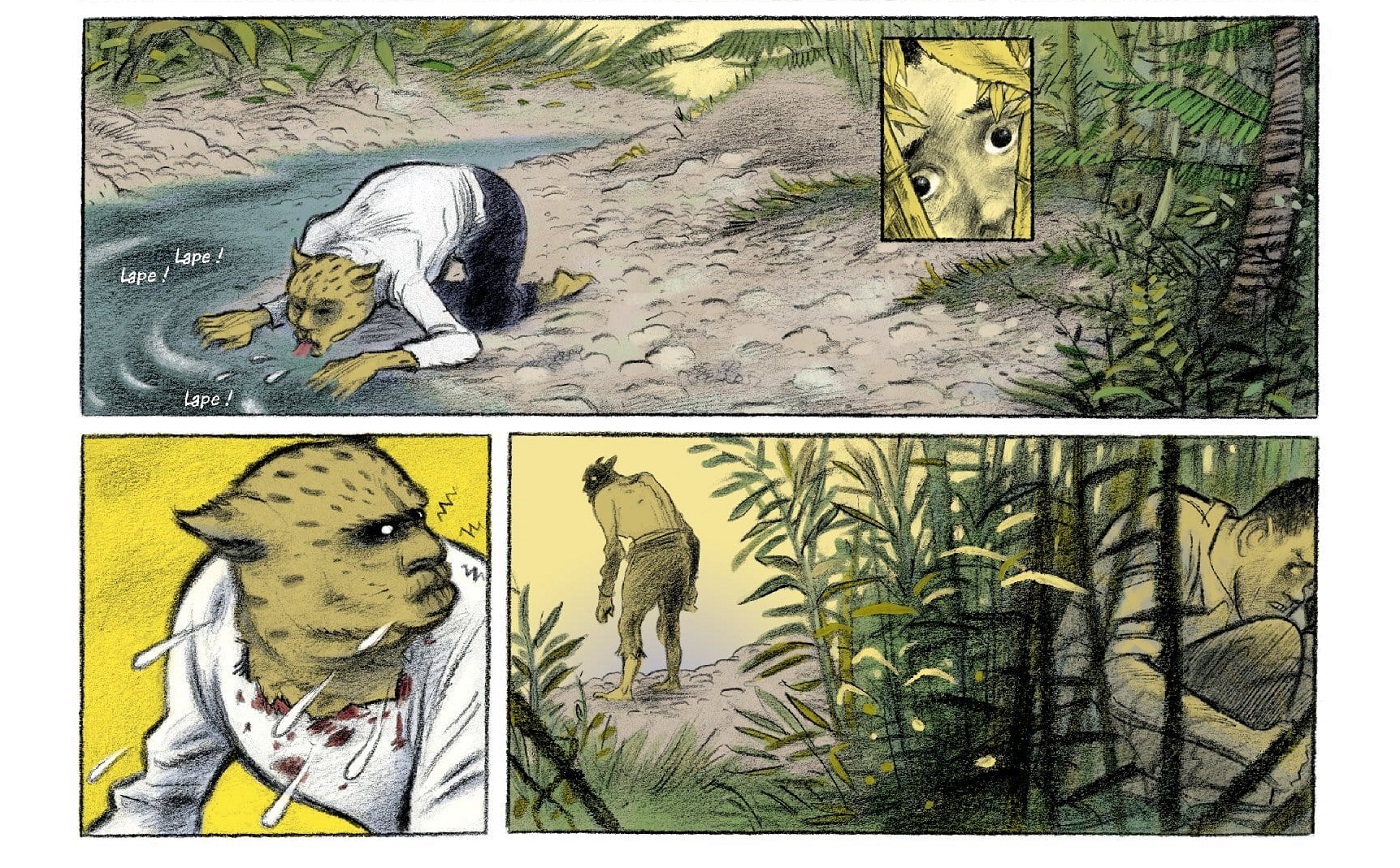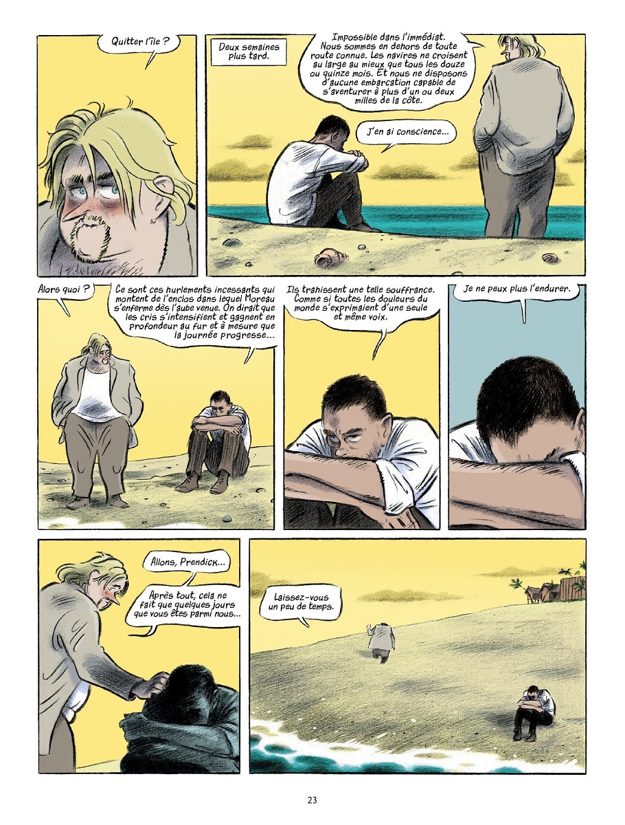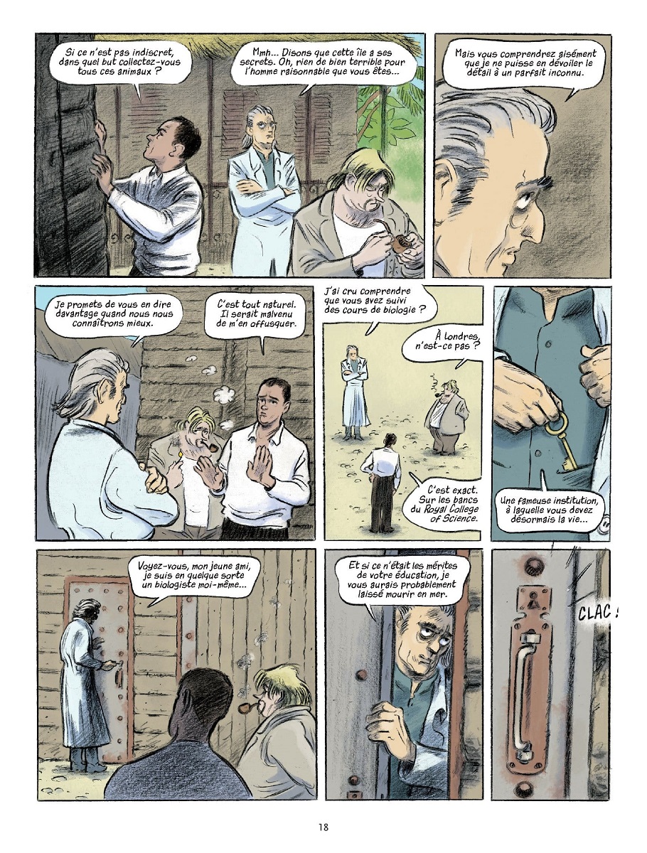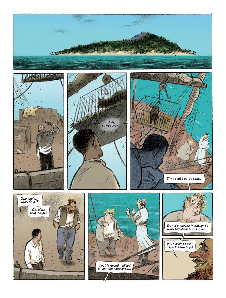 Prendick, survivant d’un naufrage, se retrouve sur une île tenue de main de maître par un scientifique aux expériences contre-nature. Stéphane Tamaillon, Joël Legars et Anna Conzatti dévoilent le premier opus de L’île du docteur Moreau, une très belle adaptation du roman de H.G. Wells. Troublant.