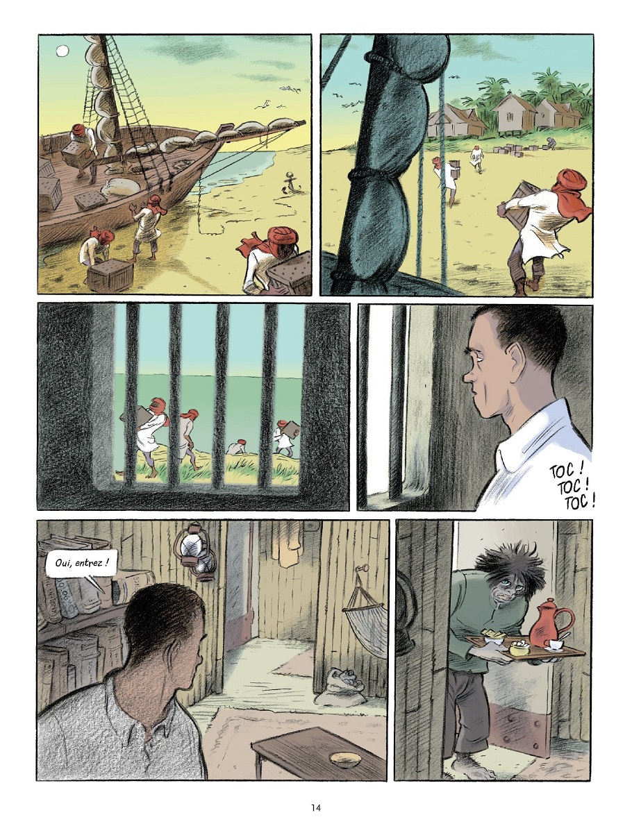 Après son très bel album L’écolier en bleu (avec Fabien Grolleau), Joël Legars signe de nouveau une superbe partie graphique sur ce premier volume de L’île du docteur Moreau. Son trait semi-réaliste charbonneux fonctionne à merveille pour le côté angoissant de l’album. Son découpage et ses cadrages sont d’une belle efficacité.