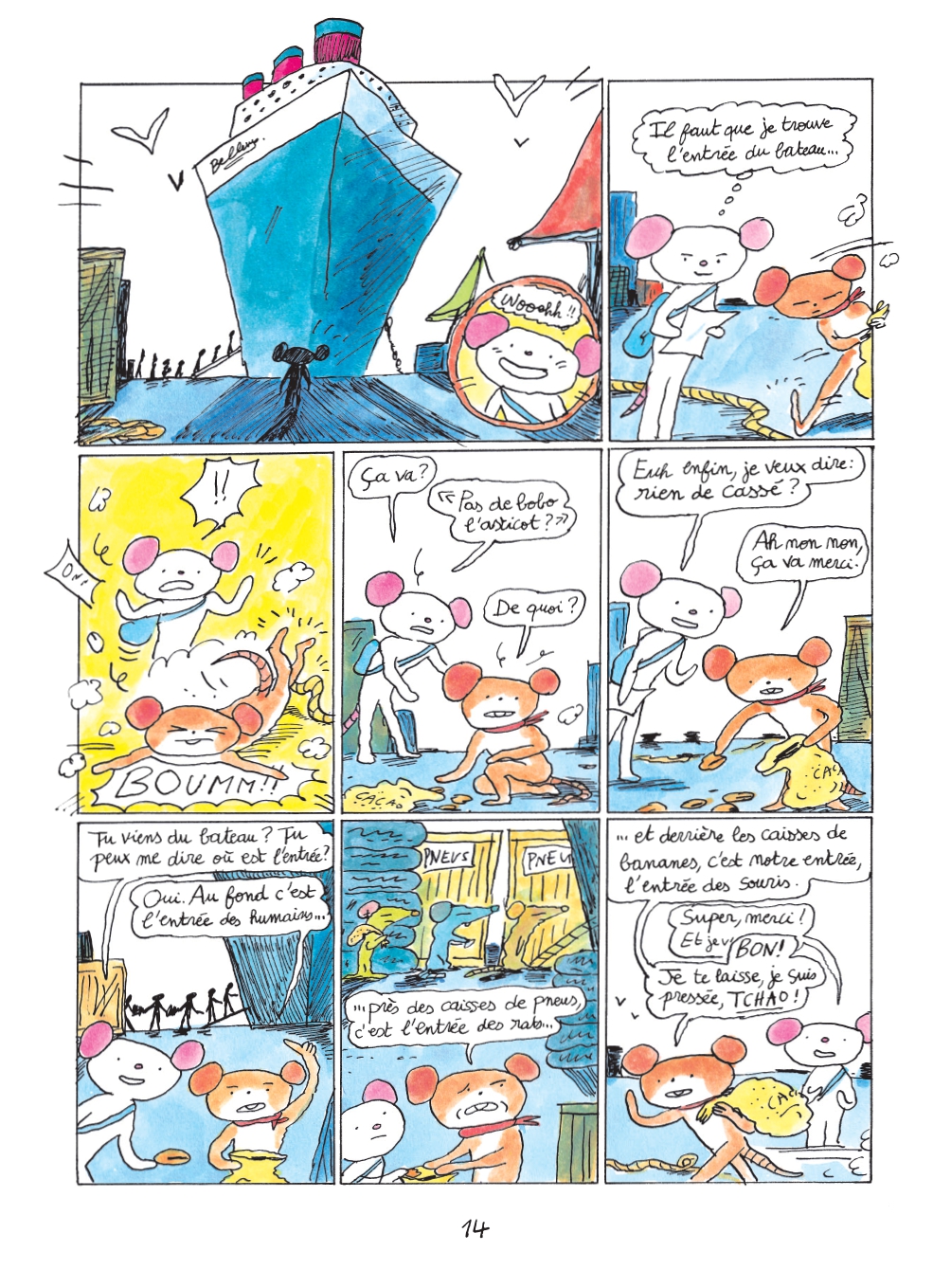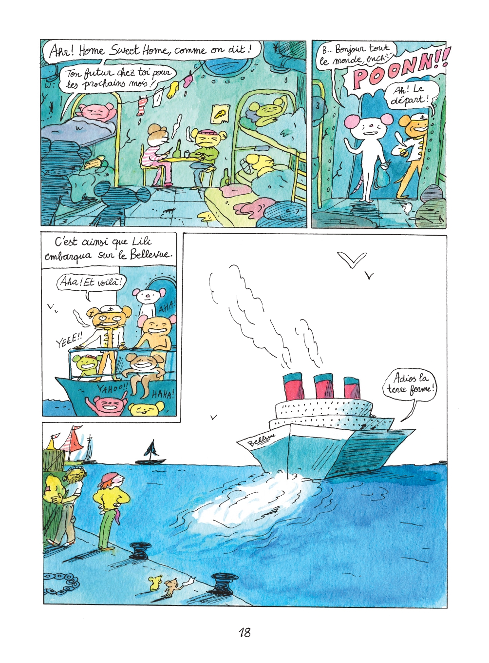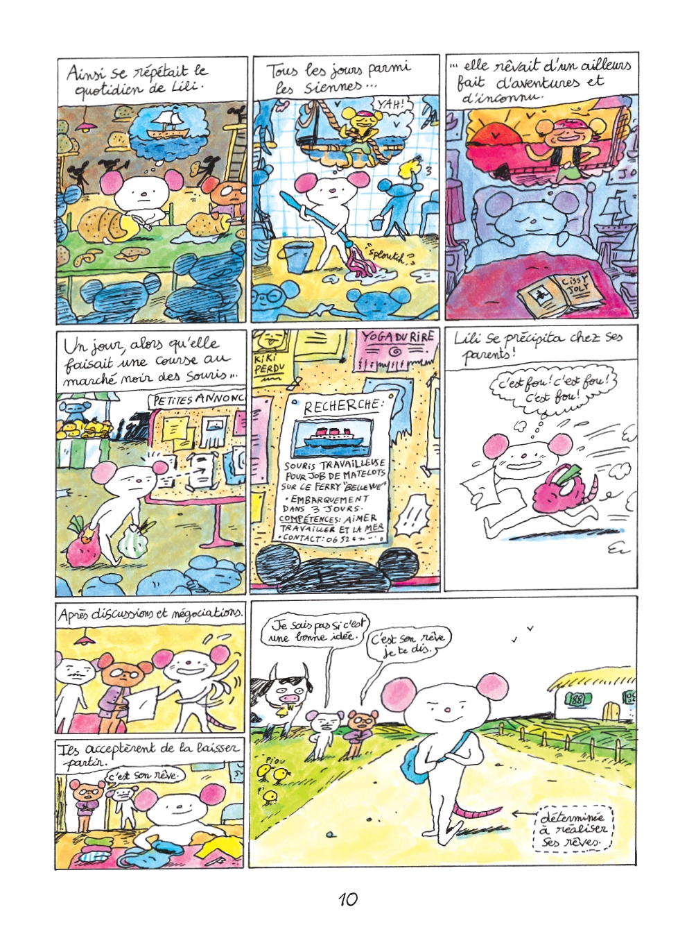 “C’est fou ! C’est fou ! C’est fou !”, pense la petite souris. Après avoir durement négocié avec ses parents, Lili met les voiles jusqu’au port pour embarquer.