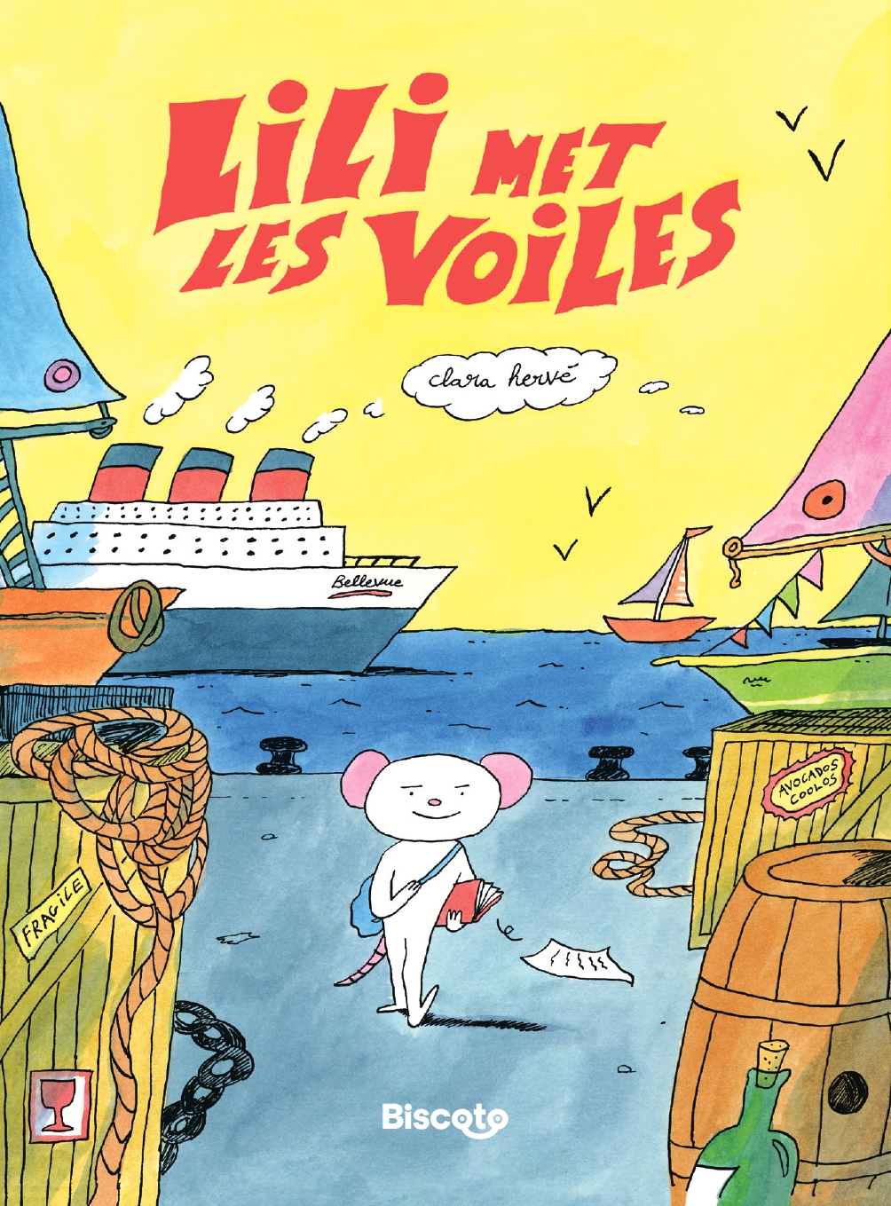 Résumé de l’éditeur : Lili, grande lectrice des exploits du pirate Cissy Joly, rêve d’aventure, et les vaches de ses parents font de bien piètres matelots ! Découvrant l’annonce du Bellevue, un immense paquebot qui embauche des souris travailleuses, elle décide d’embarquer. L’aventure ne sera peut-être pas là où elle l’attend… Dans son premier album, Clara Hervé, lauréate du concours Jeunes Talents du Festival International de la bande dessinée d’Angoulême, propose avec son dessin libre et vibrant une aventure vive où l’amitié n’est pas toujours simple à gagner, et où les héros ne sont pas toujours ceux que l’on croit !