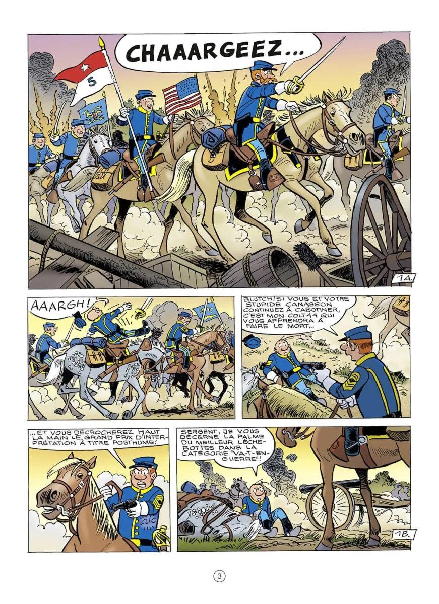 Pour beaucoup de bédéistes, les Tuniques Bleues s’apparentent à une véritable madeleine de Proust, un plaisir sans cesse renouvelé depuis l’enfance. Chaque année, on retrouve avec joie ces chers Blutch et Cornélius Chesterfield, espérant éprouver à nouveau les émotions procurées jadis par des albums mythiques comme Le David, Les Cousins d’en face, Black Face et j’en passe.
