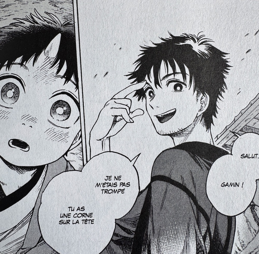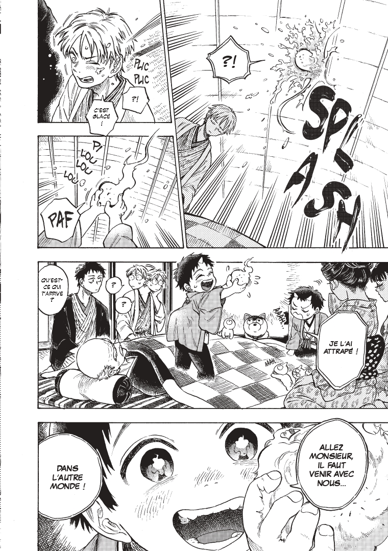 Conte fantastique, Les lueurs de l’outre-monde construit son histoire au fil des chapitres, jouant sur les non-dits et les révélations de fin d’ouvrage pour nous faire réenvisager notre lecture. Et ça marche ! C’est doux-amer, avec une petite touche de nostalgie et beaucoup d’empathie pour les différents personnages. Le dessin est à l’avenant : le trait joue avec les pleins et les déliés, avec l’épaisseur des contours pour leur donner de la force ou y insuffler de l’émotion. Torasuke est touchant, drôle, facétieux. On s’attache rapidement à ce petit démon qui découvre le monde en même temps que nous.