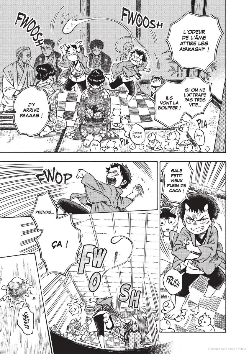 Résumé de l’éditeur : Dans le Japon du XIXe siècle, un médium et des petits démons s’allient pour délivrer les âmes des fantômes errants sur terre. An 19 de l’ère Meiji, la chaleur estivale s’est installée et le chant des cigales résonne dans l’air… Torasuke, un enfant démon et son partenaire Ushimatsu sont chargés de collecter les âmes des humains dont l’heure a sonné, tout en restant invisibles aux yeux des mortels. Quelle n’est pas leur surprise lorsqu’un nommé Sôma les interpelle ! À la demande de cet homme hors du commun, Torasuke, qui n’avait jamais eu de contact avec les gens de » ce monde « , s’embarque dans une grande aventure pour… chasser les fantômes !