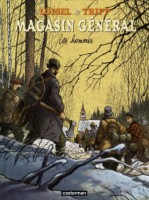 Résumé de l’éditeur : Le dernier épisode de Magasin général, point final d’une exceptionnelle série à succès. Plus de maire à Notre-Dame-des-Lacs, plus de curé ou presque, Marie enceinte d’un père que personne ne connaît et les femmes du village prises d’une frénésie d’achats comme on n’en avait encore jamais vue… Le monde s’est-il mis à marcher sur la tête, là-bas au fin fond du Québec rural ? Est-ce là l’oeuvre du démon, le commencement de la fin ? Non, bien sûr, car ce qui imprègne avant tout chaque image, chaque scène, chaque dialogue et chaque personnage de ce spectaculaire dénouement en forme d’apothéose joyeuse, c’est le bonheur ! Loisel et Tripp ont manifestement pris un plaisir fou à mener jusqu’à son terme le destin de chacun des protagonistes de cette truculente histoire chorale à l’humour irrésistible, au fil des quelques mois de l’année 1928 où l’on passe des neiges profondes à la chaleur de l’été sur fond de retour des hommes de leur hivernage. On y apprendra, parmi bien d’autres surprises, ce qu’il advient du bateau du vieux Noël, ce qui tourmentait tant Réjean le jeune prêtre ou encore ce que cachait la grossesse inattendue de Marie… Et le village de Notre-Dame-des-Lacs, au terme de ce final enfiévré célébré comme il se doit par un grand feu de la Saint-Jean, entre à son tour dans la modernité. Près de deux ans et neuf albums après la mort de Félix, feu l’époux de Marie, qui marquait l’amorce de la saga, Magasin général est devenu un classique de la bande dessinée. Pour l’occasion, ce neuvième et dernier volume est enrichi d’un copieux bonus en forme de générique de fin, traité à la manière d’un album photo réunissant tous les acteurs de cette inoubliable et si attachante tribu.