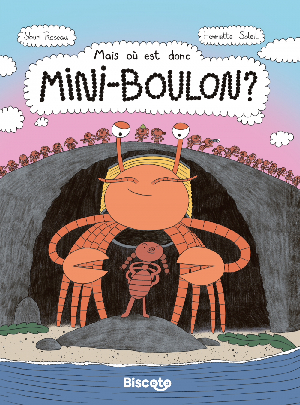 Lorsqu’un pou naufragé veut devenir un bernard-l’ermite, cela donne Mais où est donc Mini-Boulon ?, une aventure animalière loufoque et drôle. Un album jeunesse réalisé par Henriette Soleil et Youri Roseau, aux éditions Biscoto.