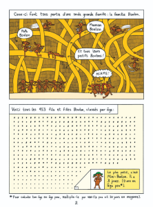 Résumé de l’éditeur : La lignée des Boulon compte 453 membres. Cette famille de poux vit paisiblement, jusqu’au jour où une bourrasque les arrache de la chevelure qui leur sert de domicile et les projette en pleine mer. Mini-Boulon, le plus jeune, échoue sur une île déserte et rencontre le bernard-l’ermite Omar, qui lui propose de devenir son disciple.